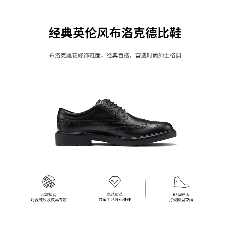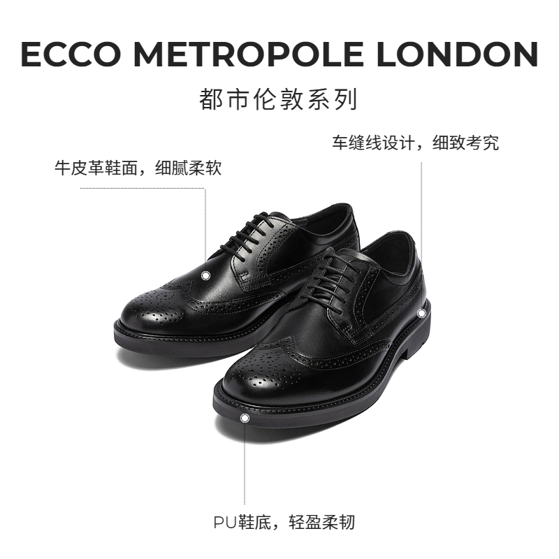 男 ECCO爱步皮鞋 婚鞋 真皮布洛克商务鞋 都市伦敦525614 秋季