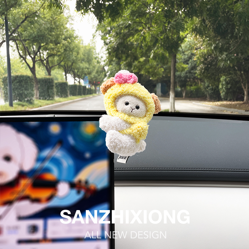 汽车摆件卡通可爱毛绒公仔车载中控台屏幕趴趴摆件车内装 饰品摆件