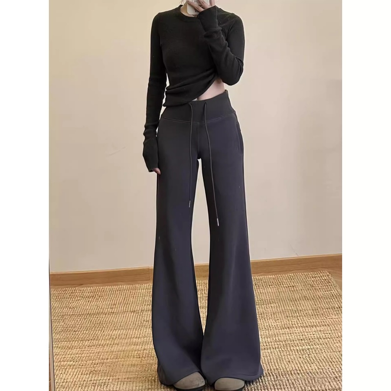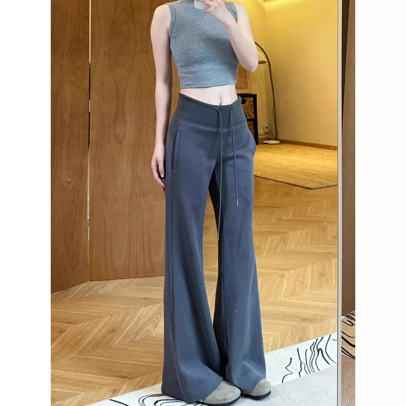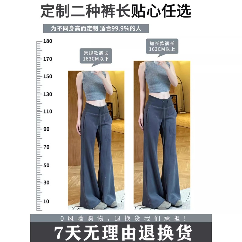 2025年新款 卫裤 修身 低腰马蹄裤 加长 深灰色微喇叭运动裤 大码 女秋季
