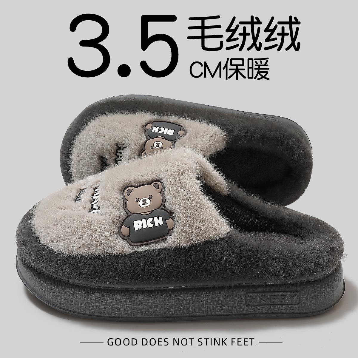 男士 男款 秋冬季 室内家居厚底防滑毛绒保暖家用拖鞋 2025新款 棉拖鞋