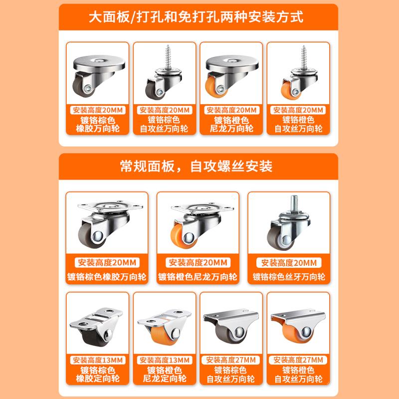 免打孔鞋 柜踢脚抽滑轮家具移动脚轮橡胶轮定向转向迷你万向轮小号