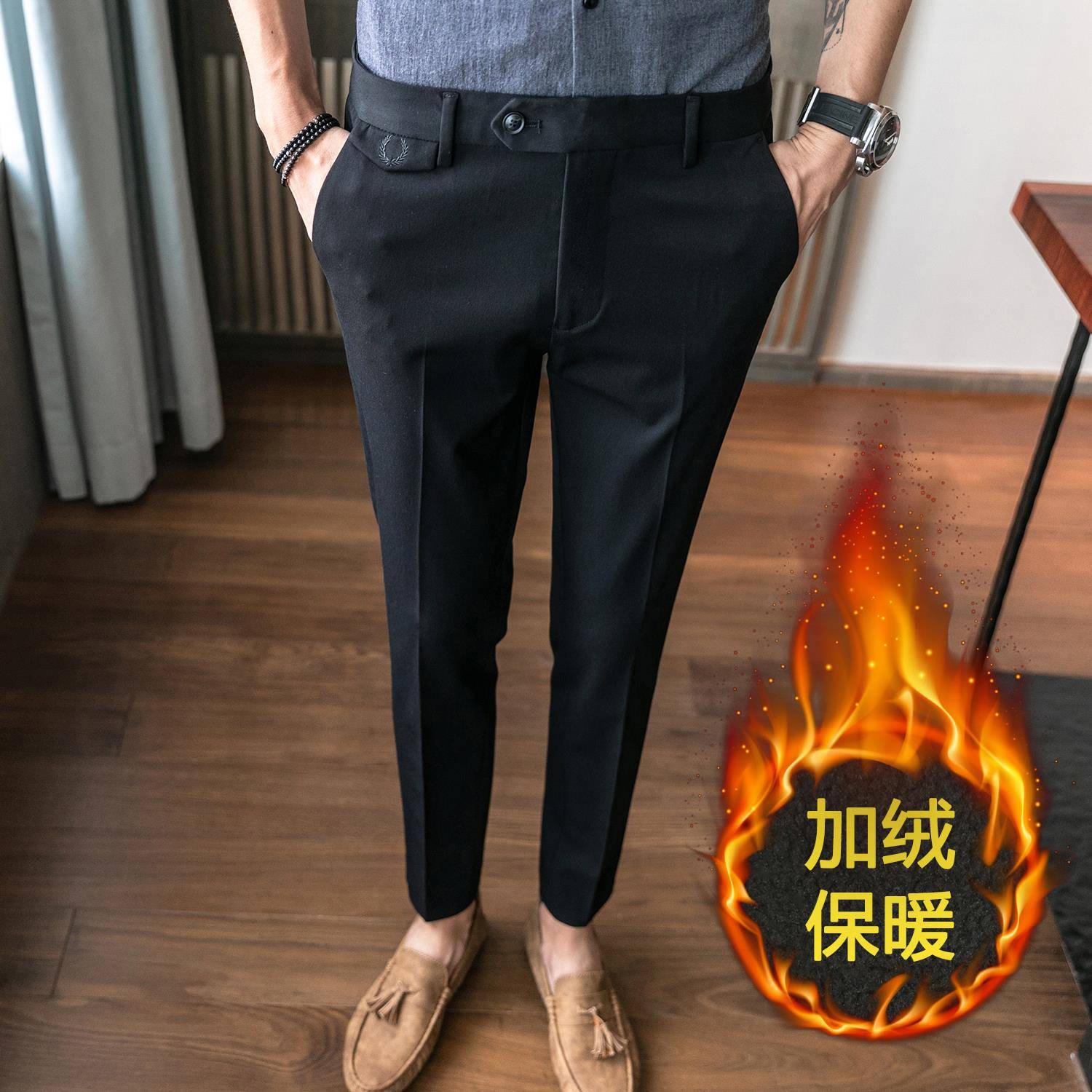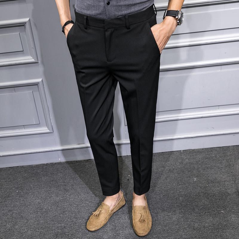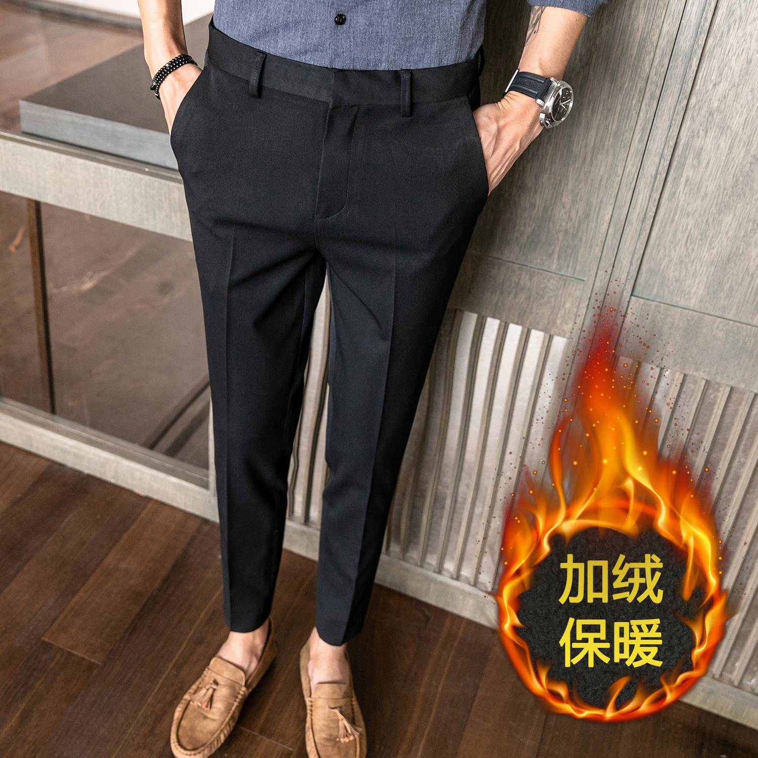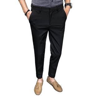 男西装 抗皱垂顺修身 裤 九分商务休闲黑色高级灰长裤 子男 男士 西裤