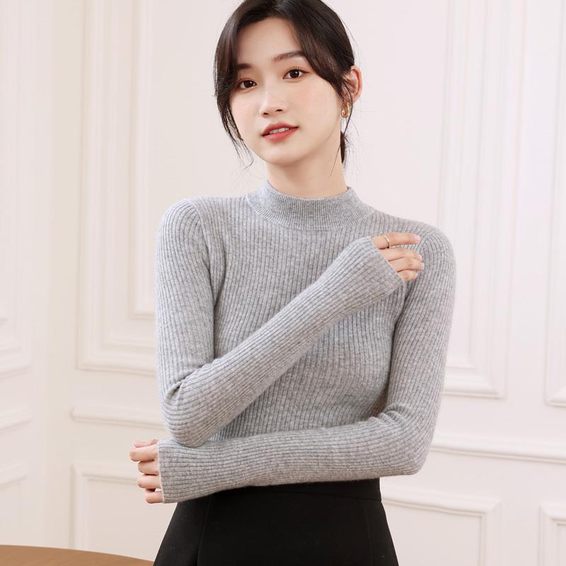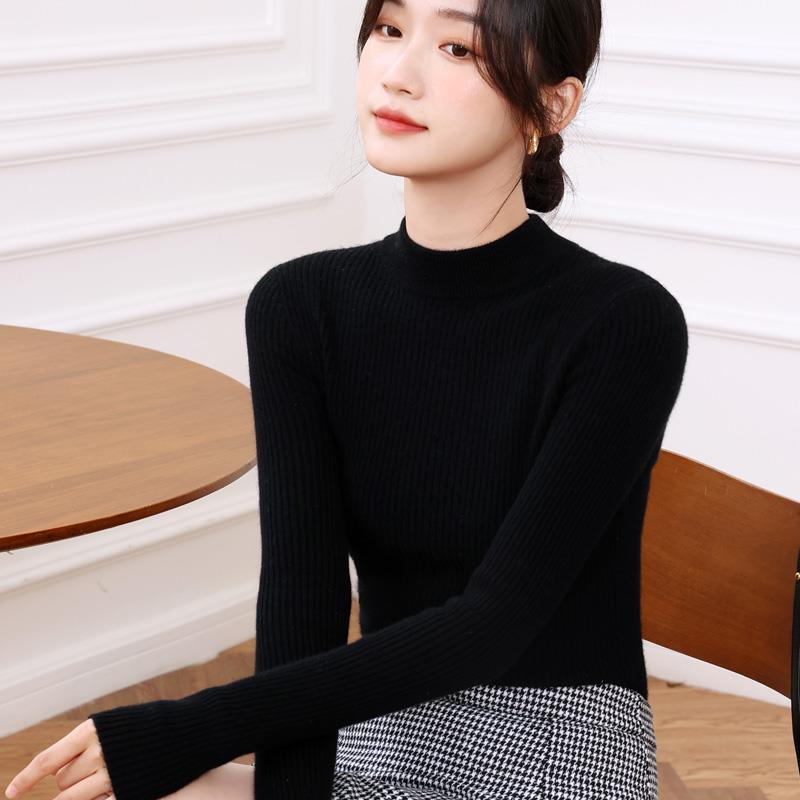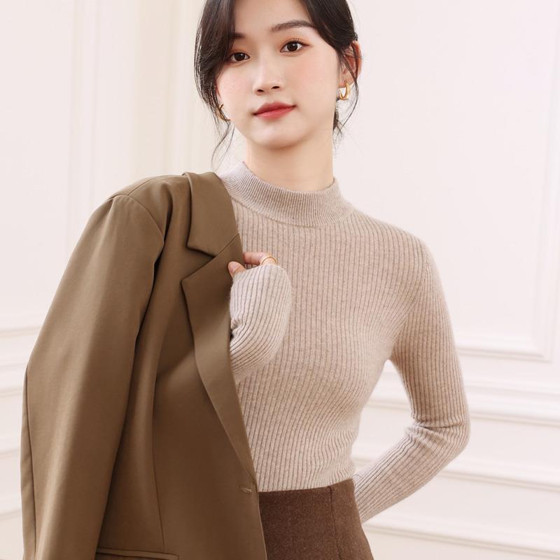 紧身内搭打底1006r 针织衫 秋冬温柔半高领毛衣女修身 加厚百搭长袖
