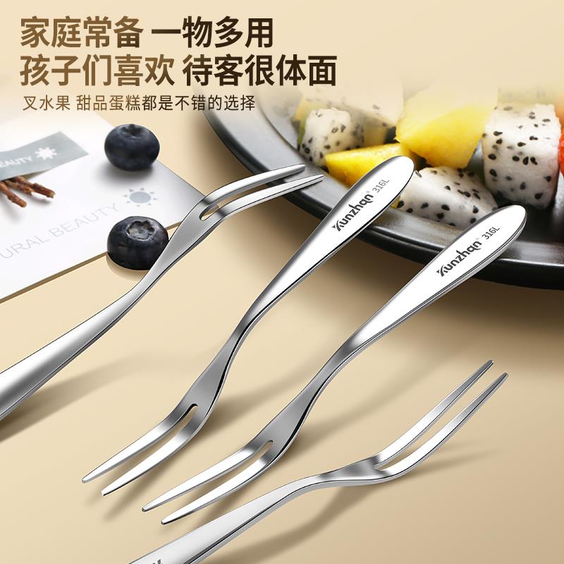 水果叉不锈钢316L套装 迷你家用儿童插轻奢餐具商用甜品蛋糕小签子