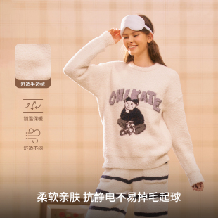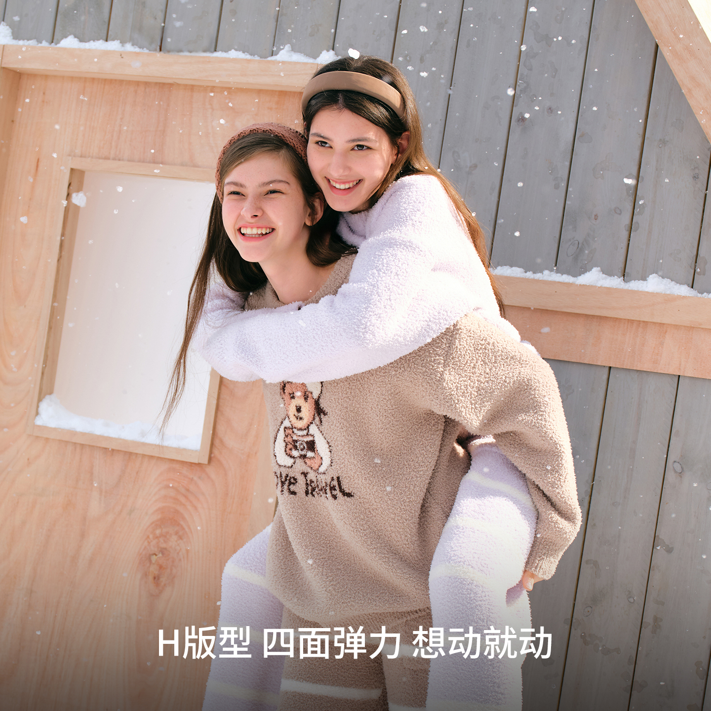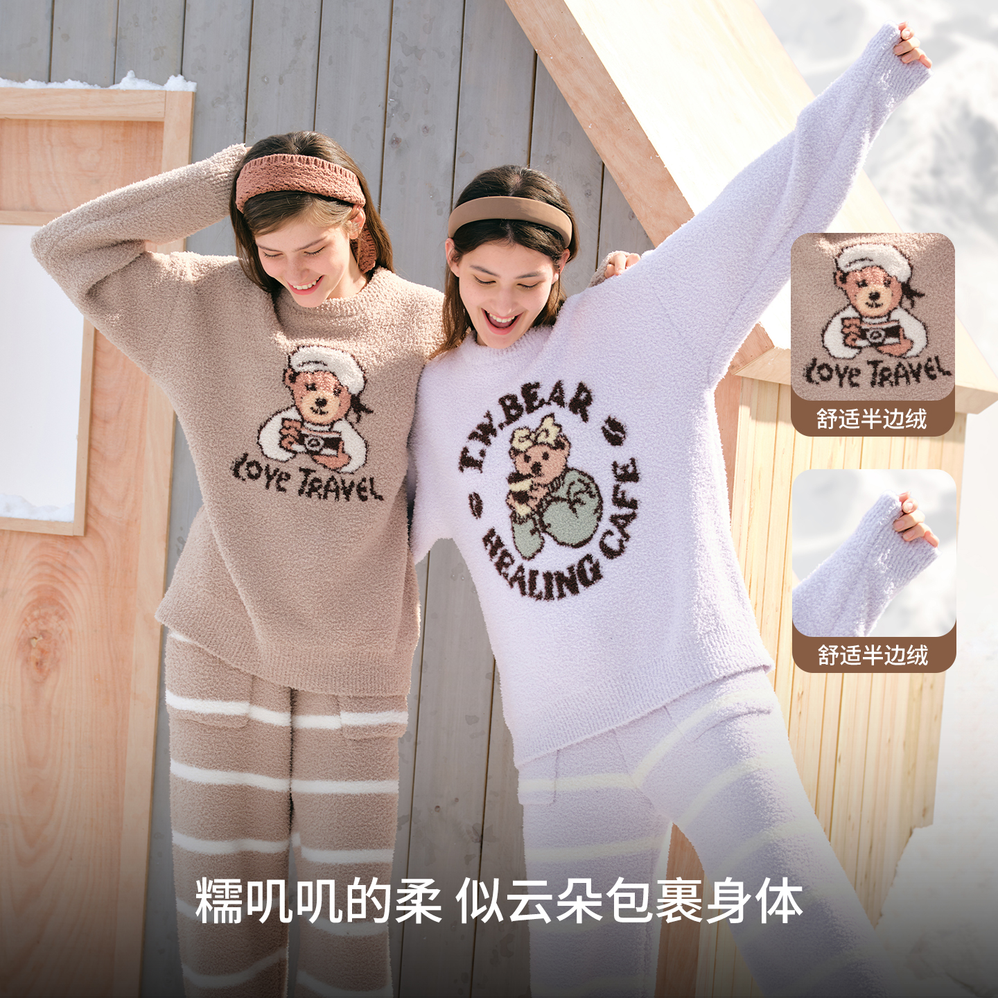 TeenieWeenie小熊半边绒睡衣女2025新款 女 秋冬加厚情侣家居服套装