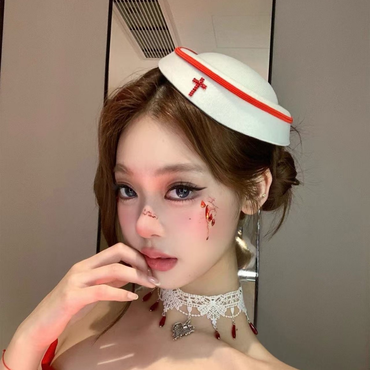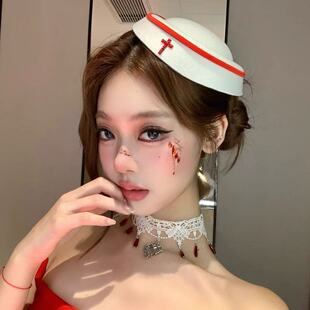 噩梦护士 扮拍照护士帽女拎环 血钻十字架小礼帽发夹万圣节cos装