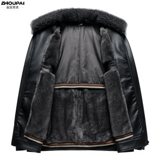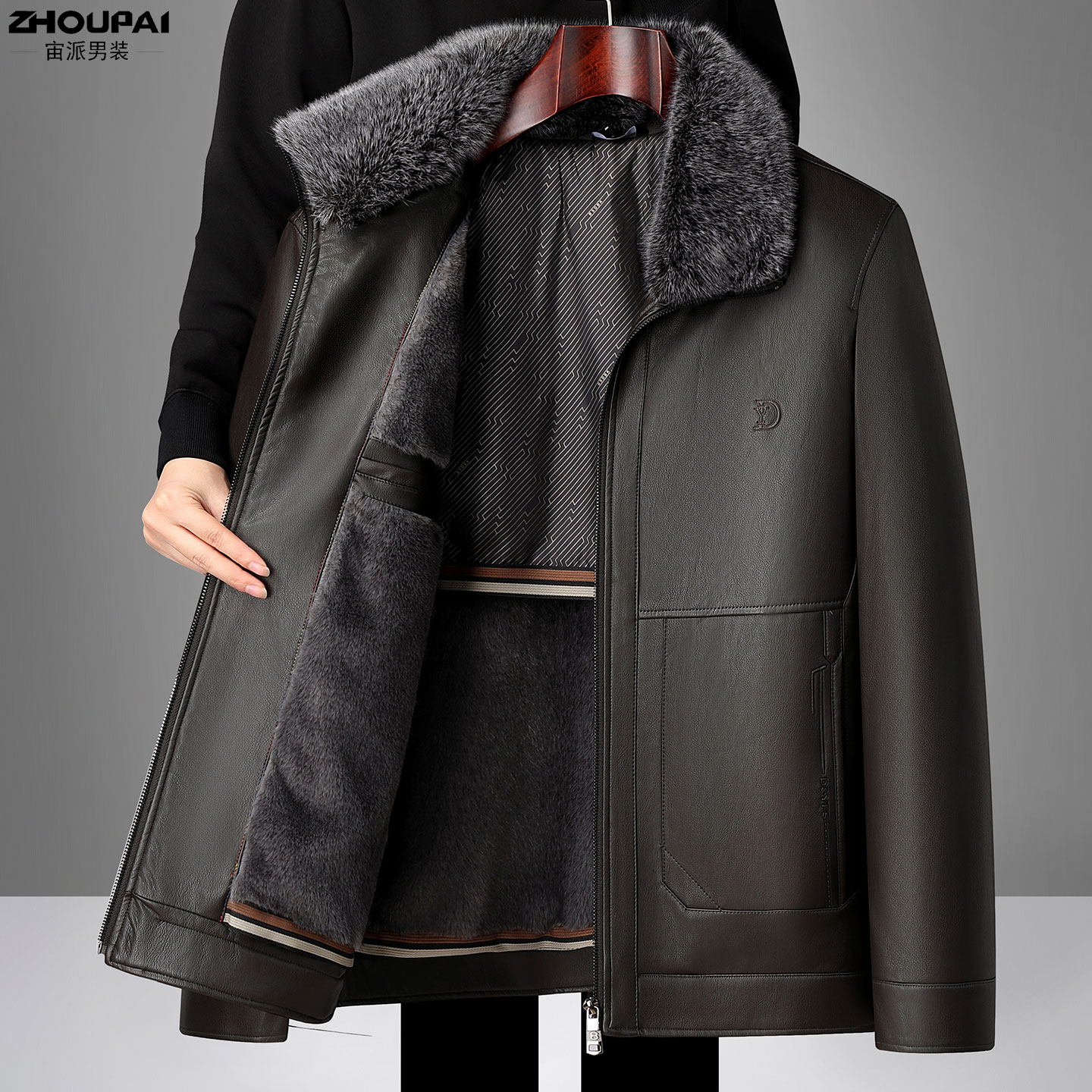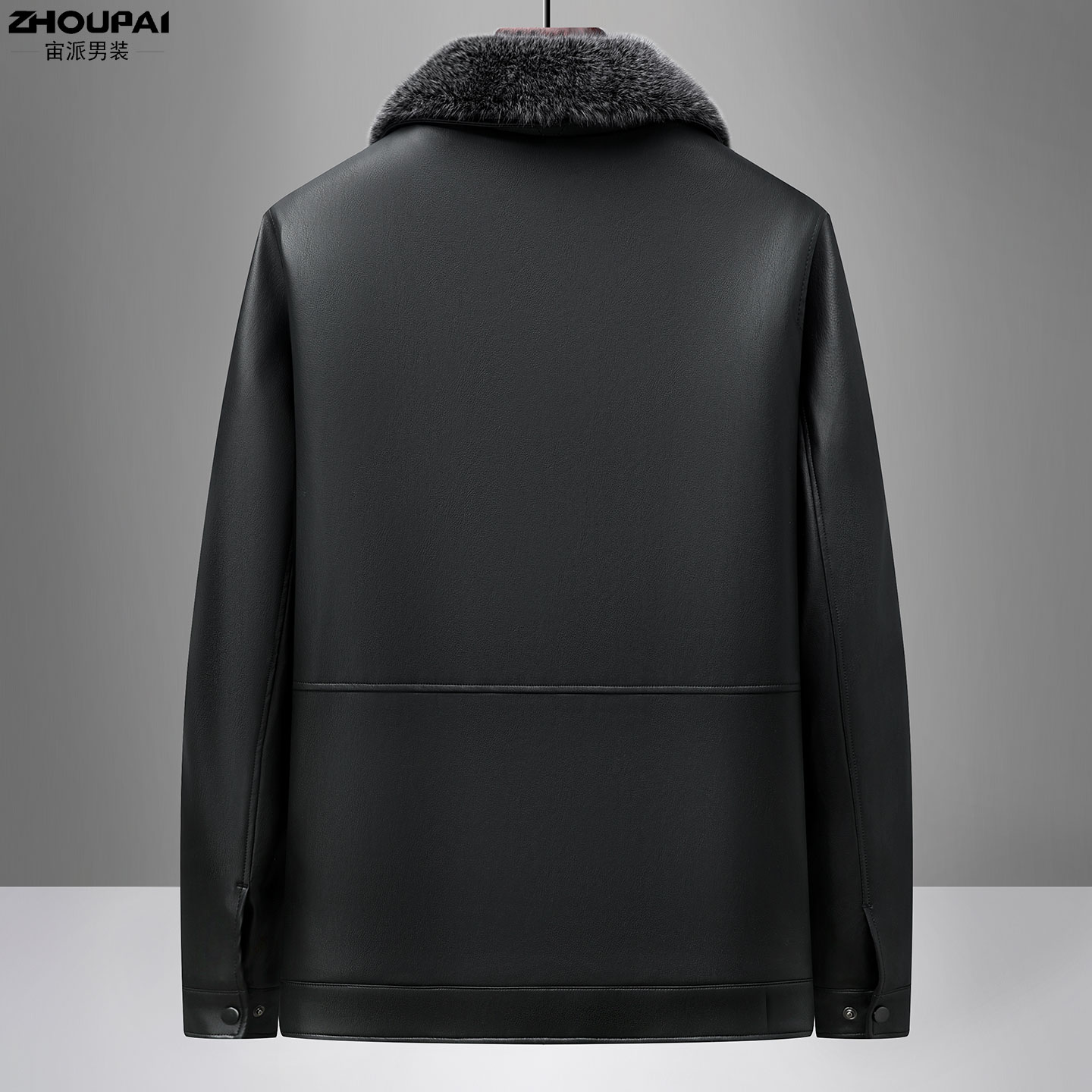 皮衣加绒加厚爸爸冬装 中年男士 皮夹克外套爷爷老人皮棉袄 新款 冬季