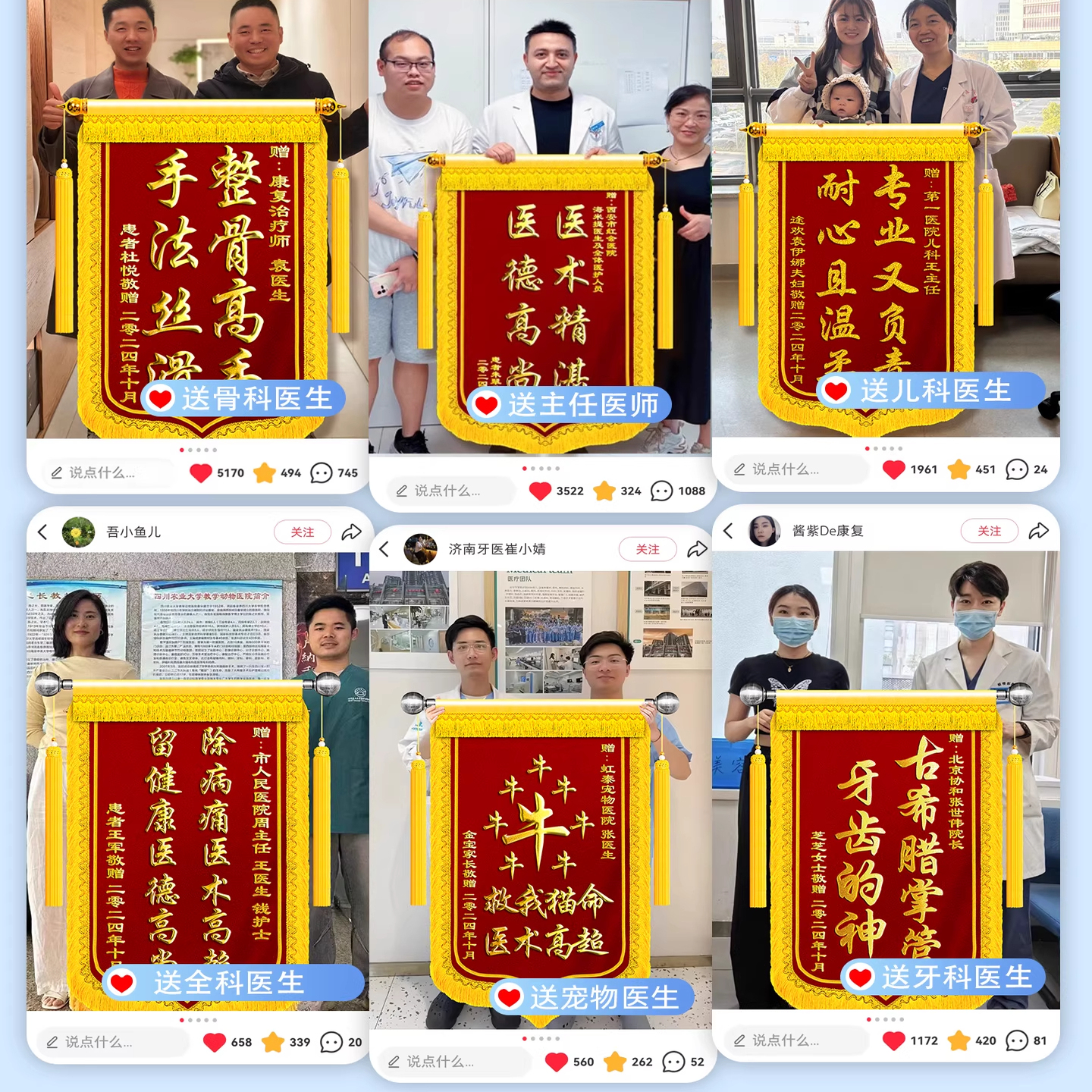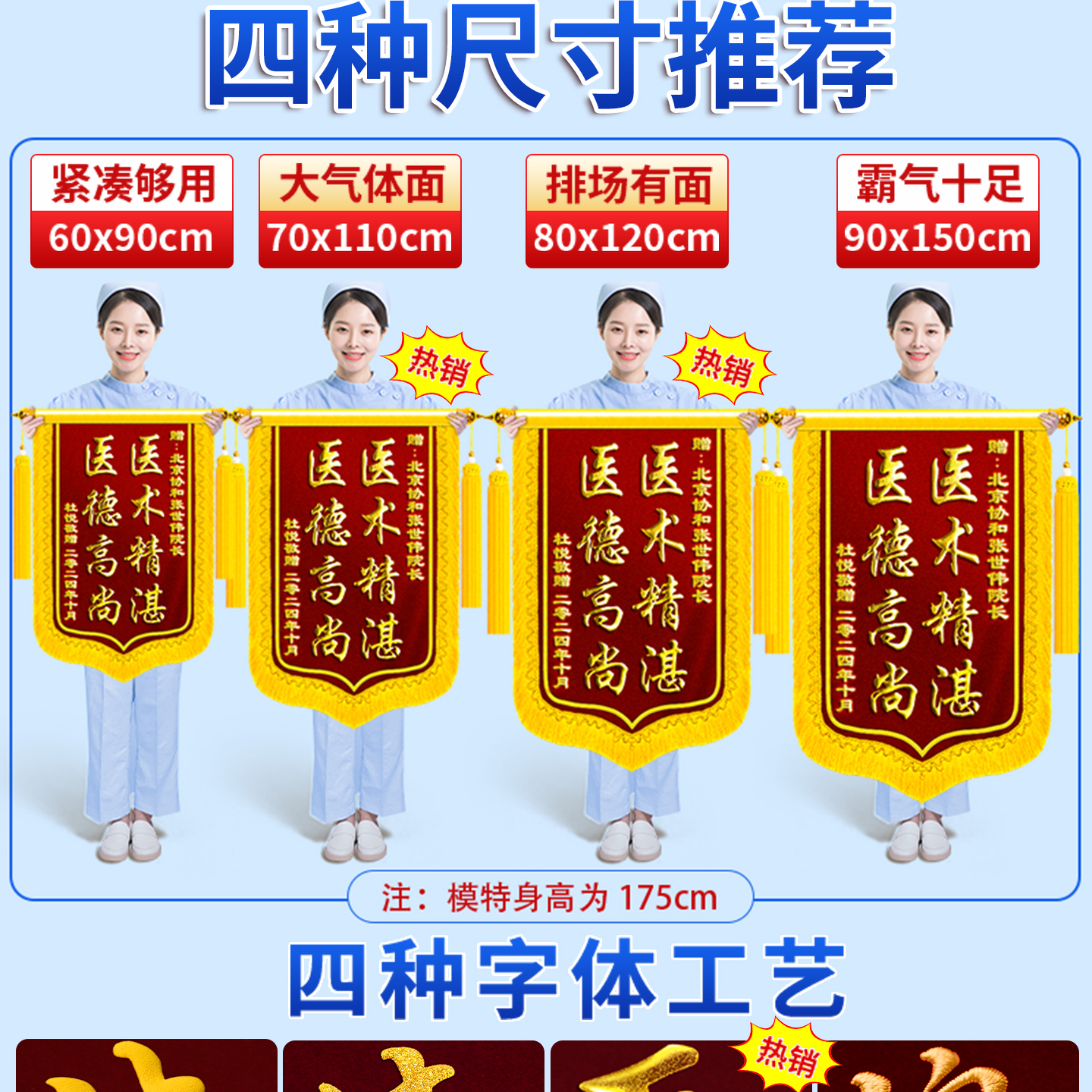锦旗定制定做感谢医生赠送医院护士妇产科美容院 旗帜送宠物医院服务刺绣高档金丝绒小旌旗订做制作锦旗