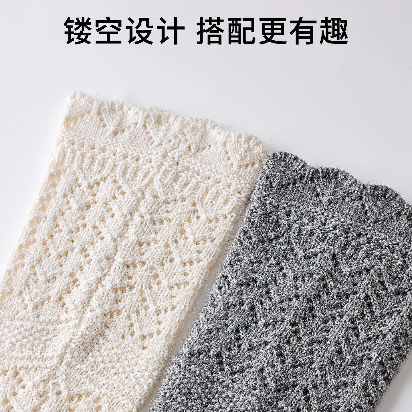 派米羊毛针织小腿袜子女秋冬复古镂空花边长筒袜配靴子保暖堆堆袜