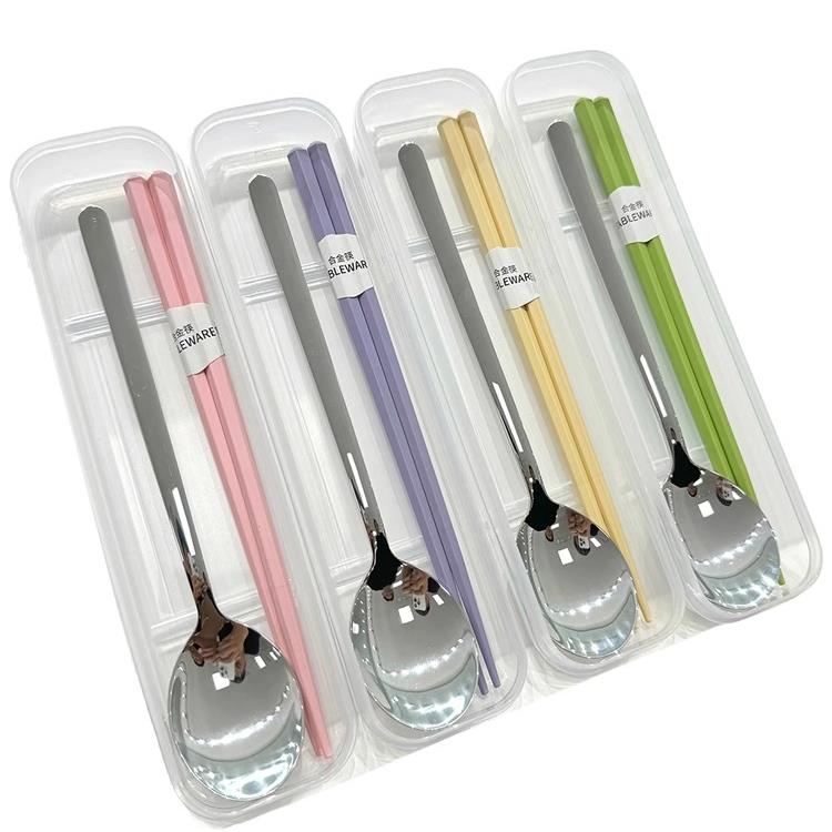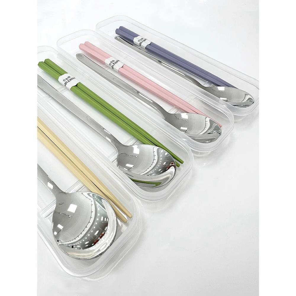 不锈钢筷子勺子套装 一人用便携两件套勺筷收纳盒可爱学生防滑餐具