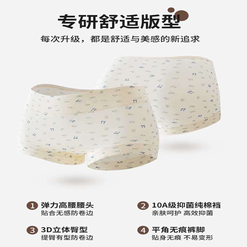 无痕透气内裤 四角短裤 女中腰 纯棉10a抗菌2025新款 少女平角内裤