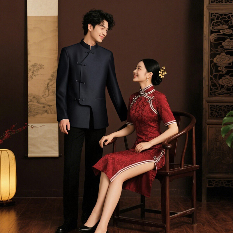 盘扣立领中山装 罗蒙中国风新郎订婚西服套装 新中式 新款 2025秋季