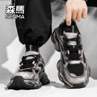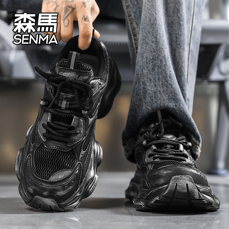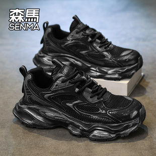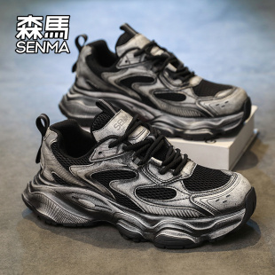 時尚休闲运动厚底跑步鞋 秋冬透气厚底增高老爹鞋 2025新款 森马男鞋