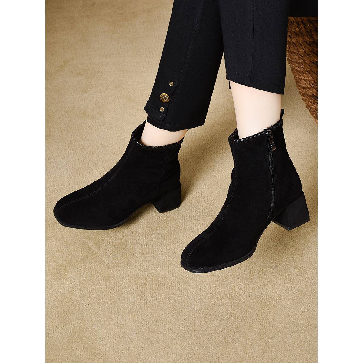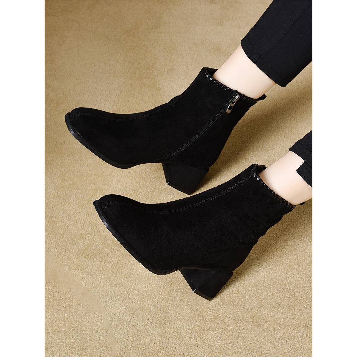 达芙妮厚底马丁靴女款 春秋高跟短靴女瘦瘦靴黑色靴子短靴 2025新款