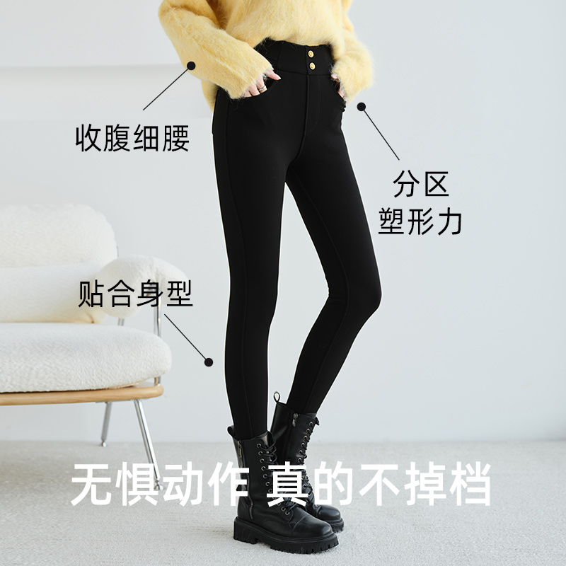 小脚鲨鱼裤 秋冬加绒打底裤 大码 显瘦修身 女羊绒高弹加绒高腰小黑裤