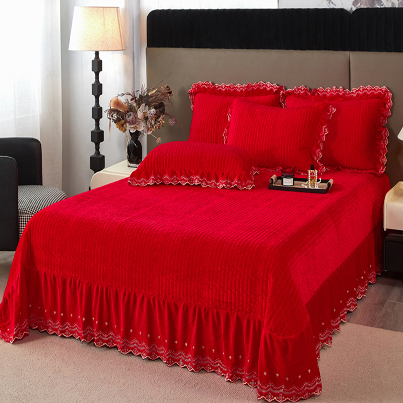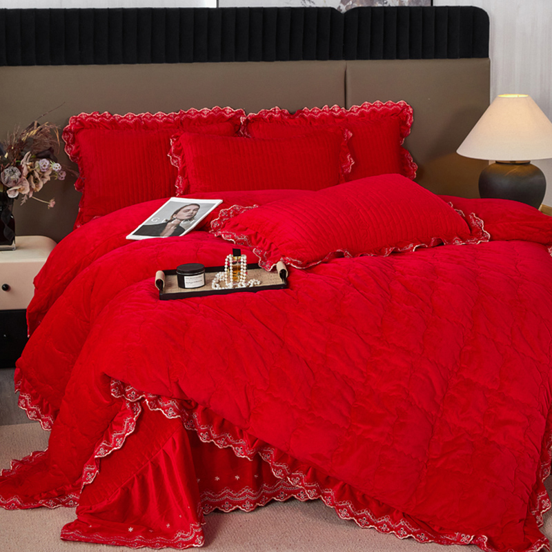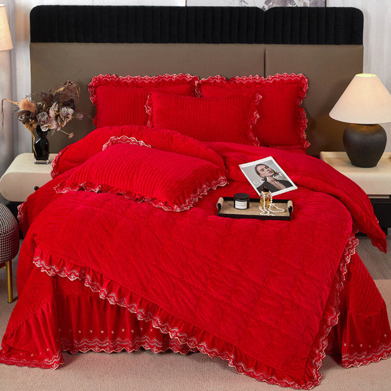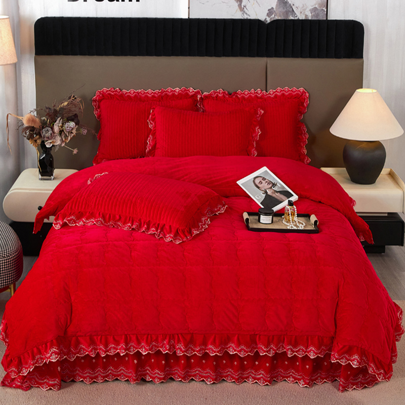 轻奢风刺绣款 高档婴儿绒床盖四件套宝宝绒牛奶绒花边加厚被套保暖
