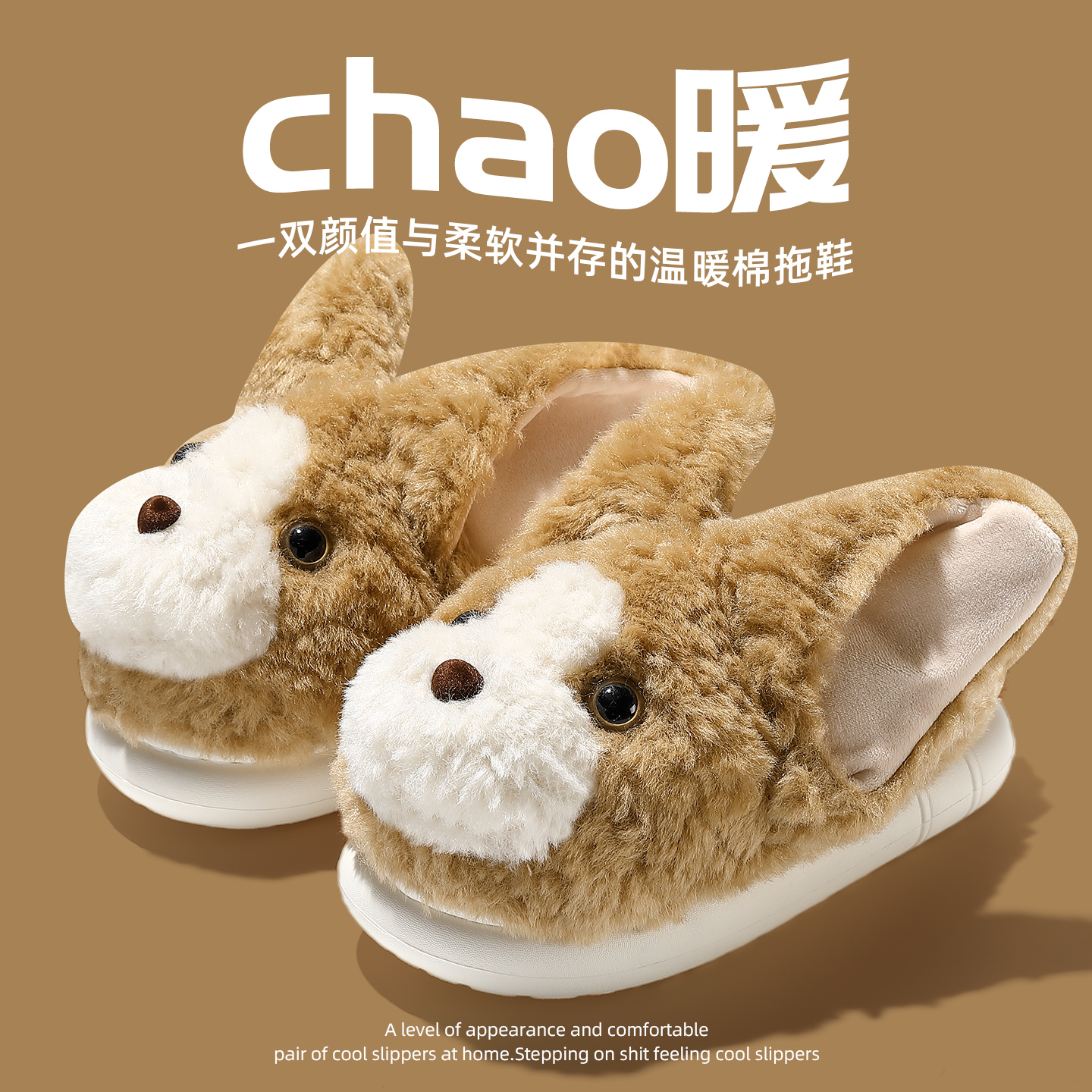 室内家居加绒保暖毛毛绒棉拖男 秋冬季 立耳小狗棉拖鞋 女士2025新款