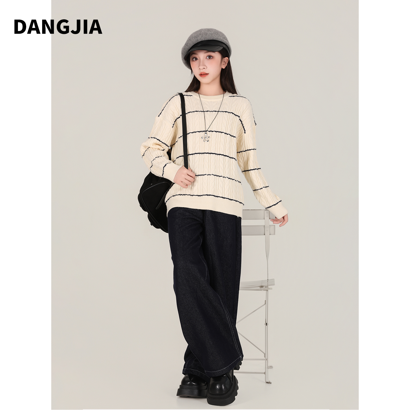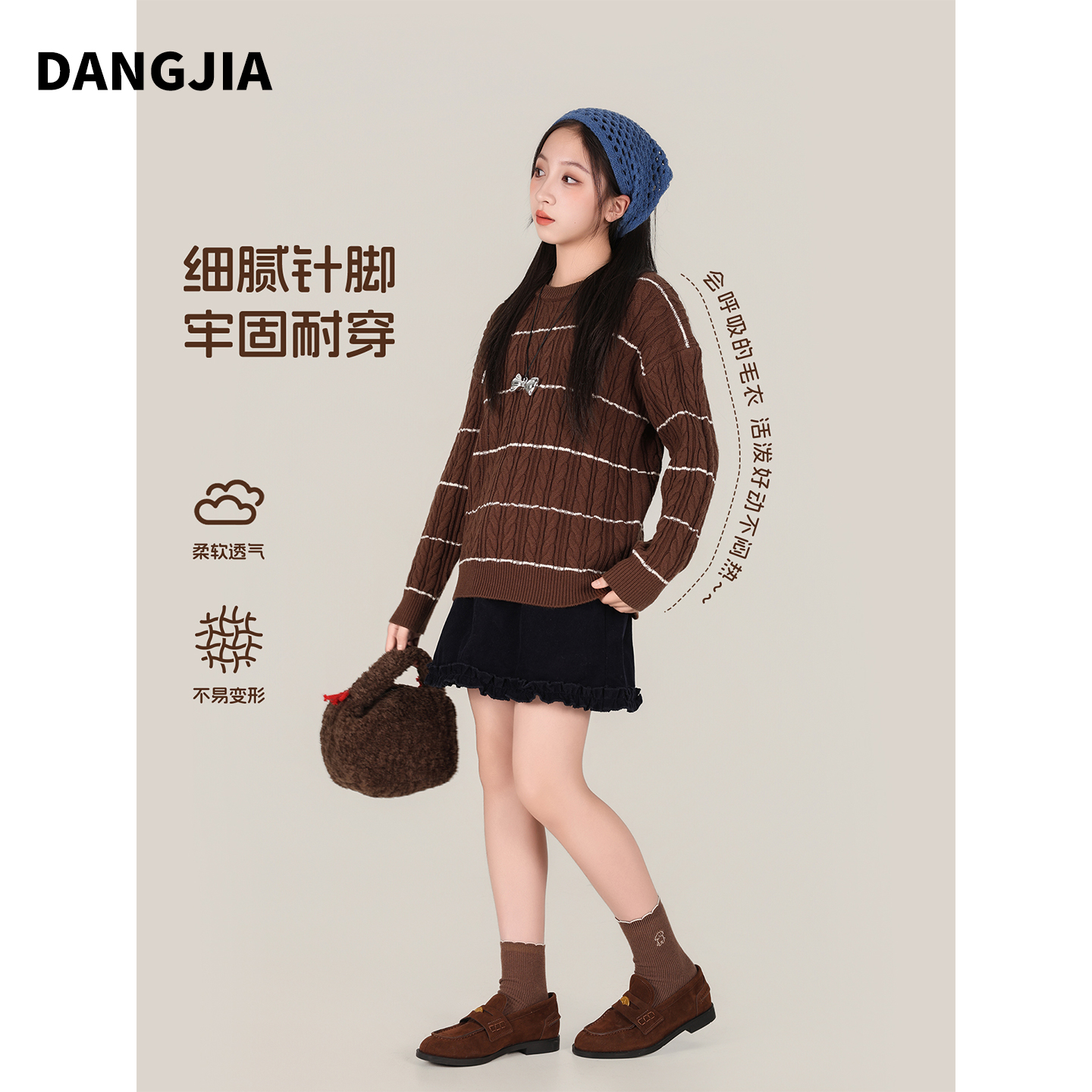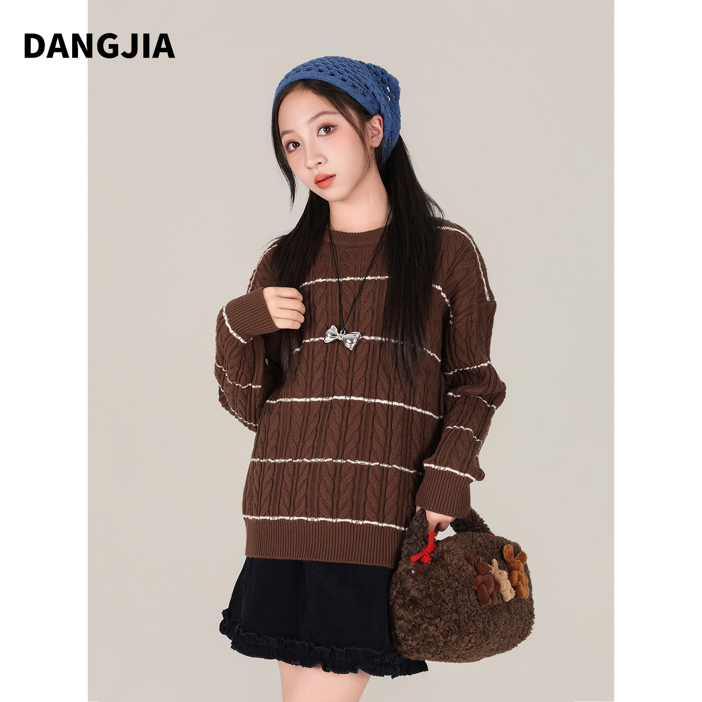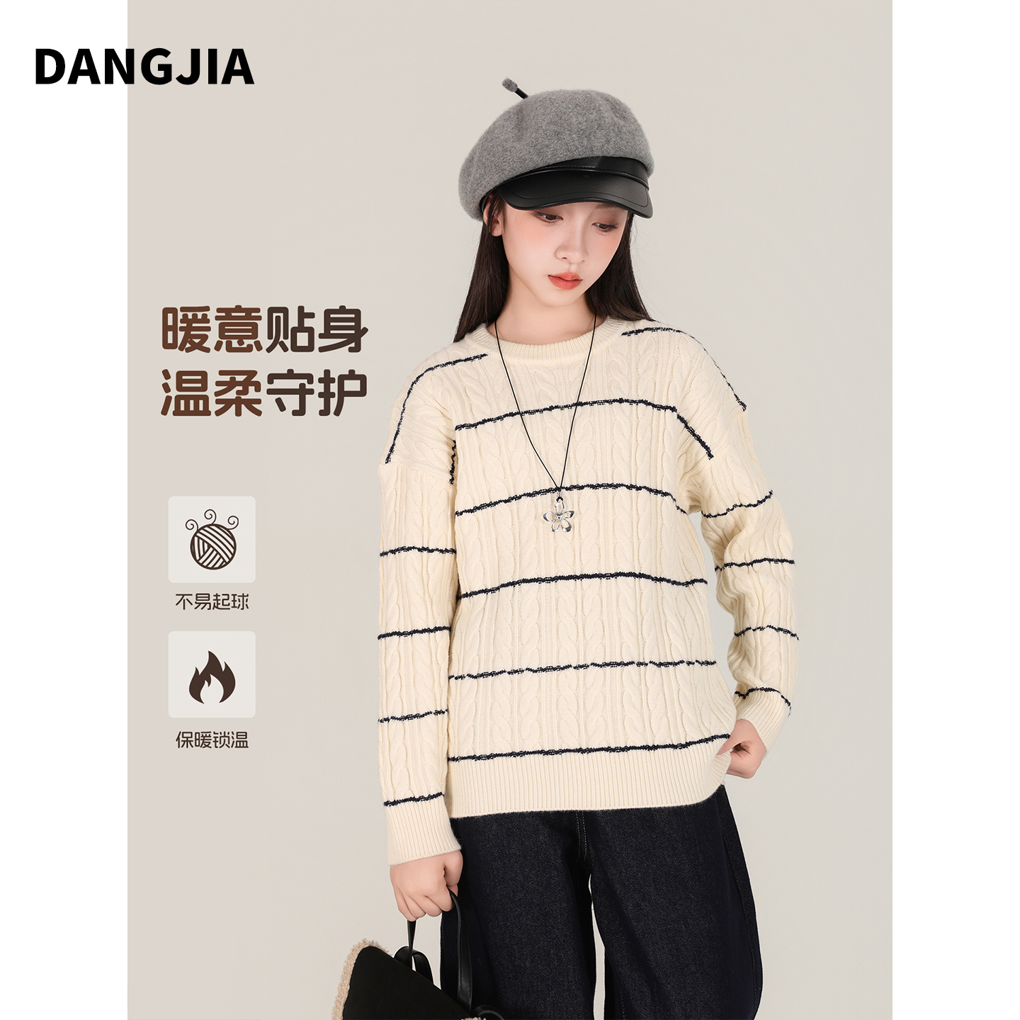多色 羊毛混纺女士品质通勤毛衣慵懒开衫 太平鸟 miu绞花圆领针织衫