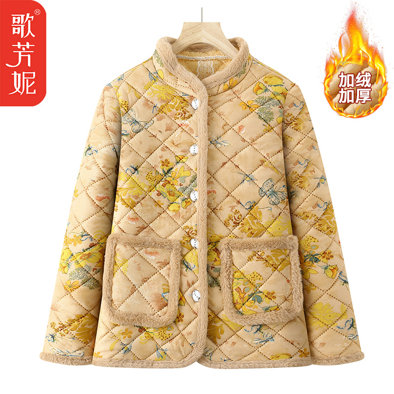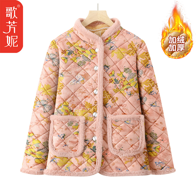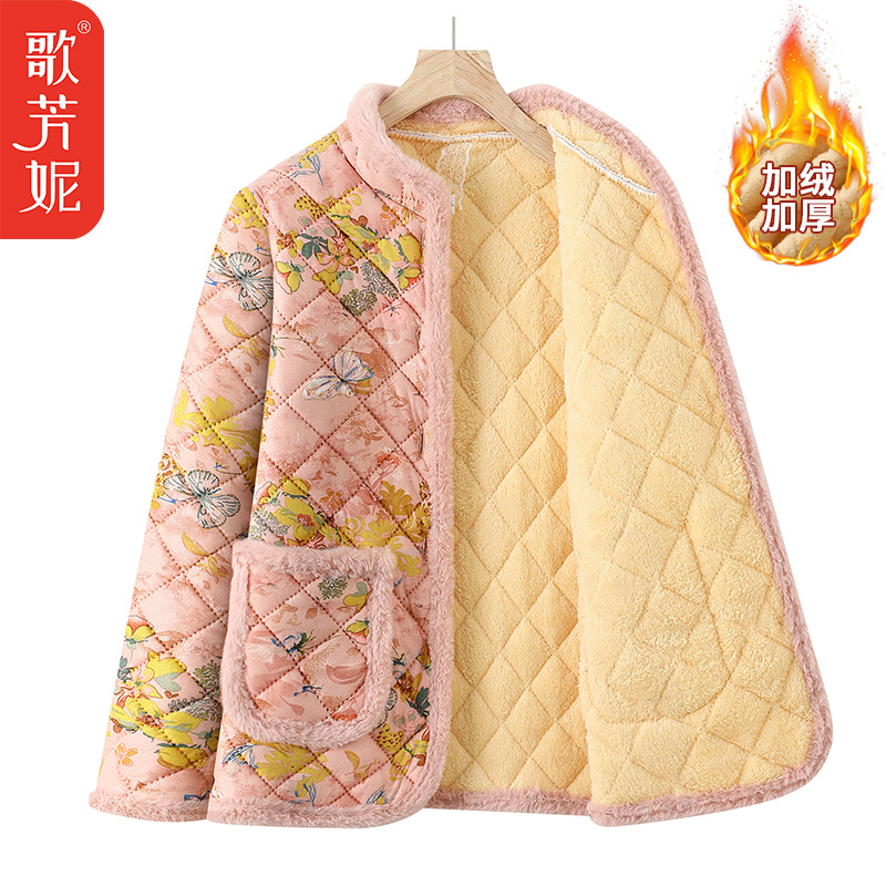 妈妈装 中老年女装 加绒加厚外套2025新款 盘扣棉衣秋冬装 棉袄 新中式