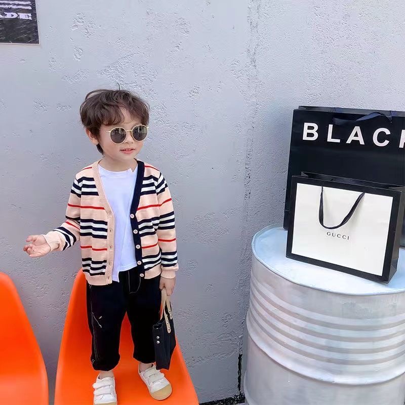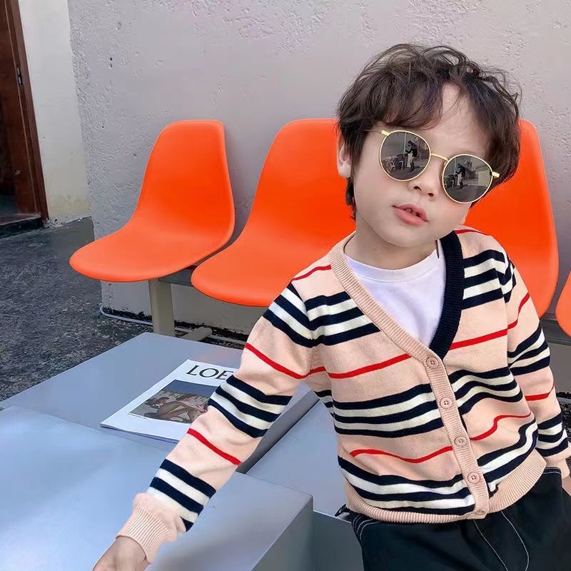 上衣条纹毛衣外套潮 韩版 2025小童洋气针织开衫 男女童宝宝春秋季