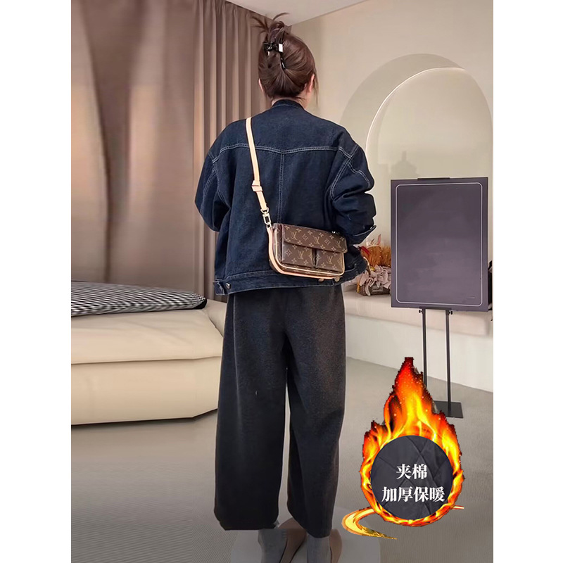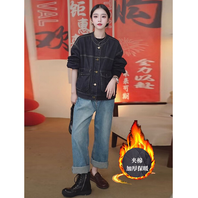 夹克上衣潮 工装 夹棉牛仔外套女冬季 港风复古保暖加厚棉衣棉服短款