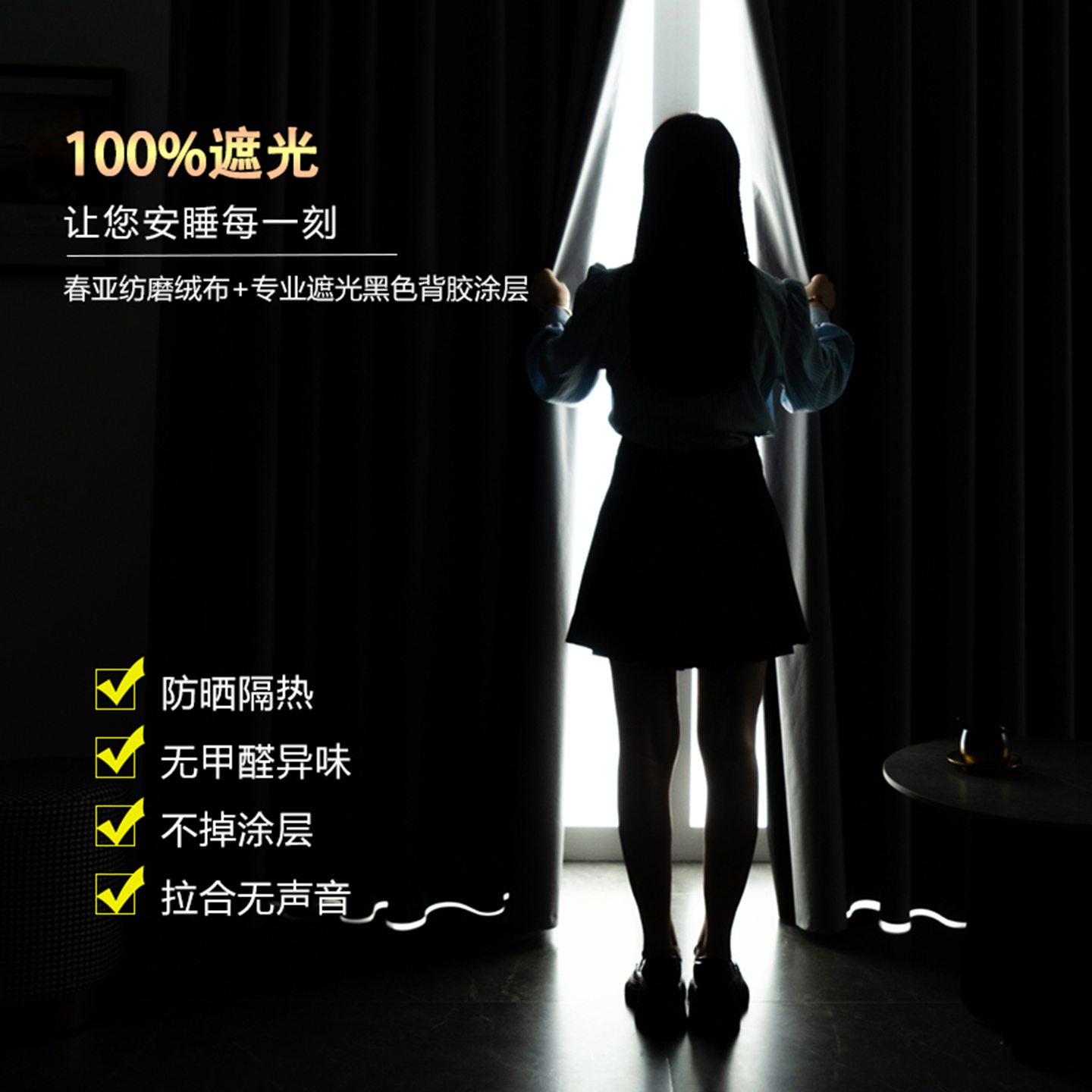 窗帘免打孔安装 100不透出租房阳台卧遮阳窗帘布 全遮光布2025新款