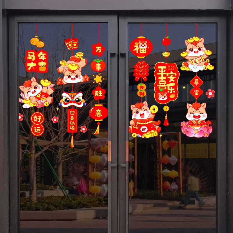 窗花贴家用厨房氛围场景布置静电玻璃门贴纸 饰2026新款 元 旦新年装