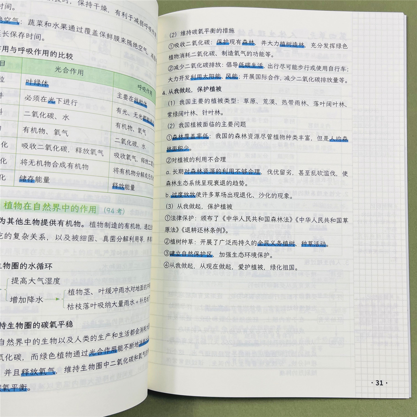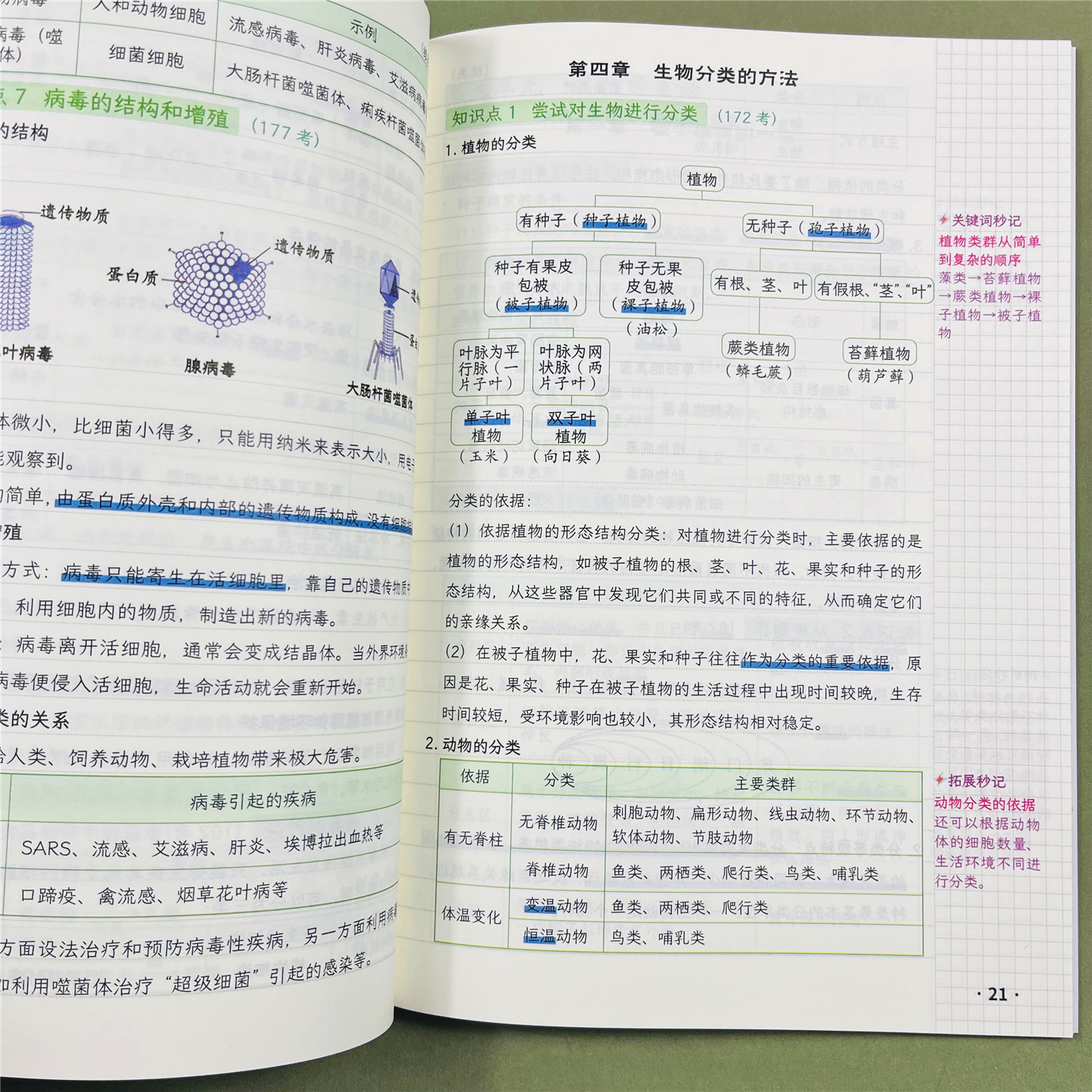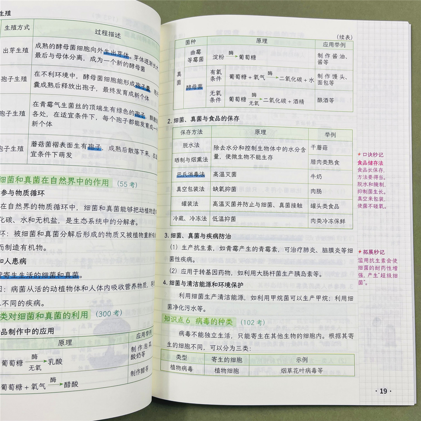 秒记初中生物学图解速记生物七八年级九年级生物学学霸笔记初中生物学背诵题生物和细胞植物 生活人体生理与健康生物知识点背诵