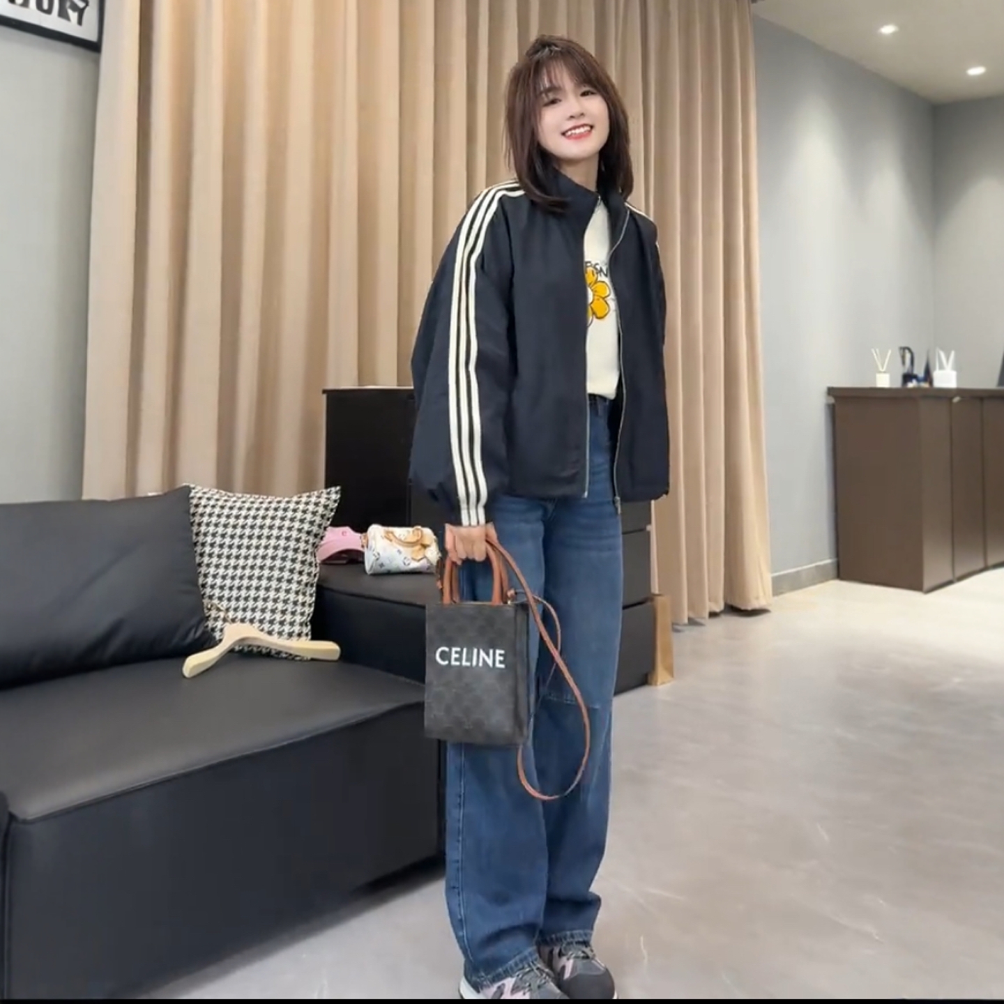时尚 2025秋季 休闲显瘦上衣 设计感立领三条杠冲锋衣短外套女装 爆款