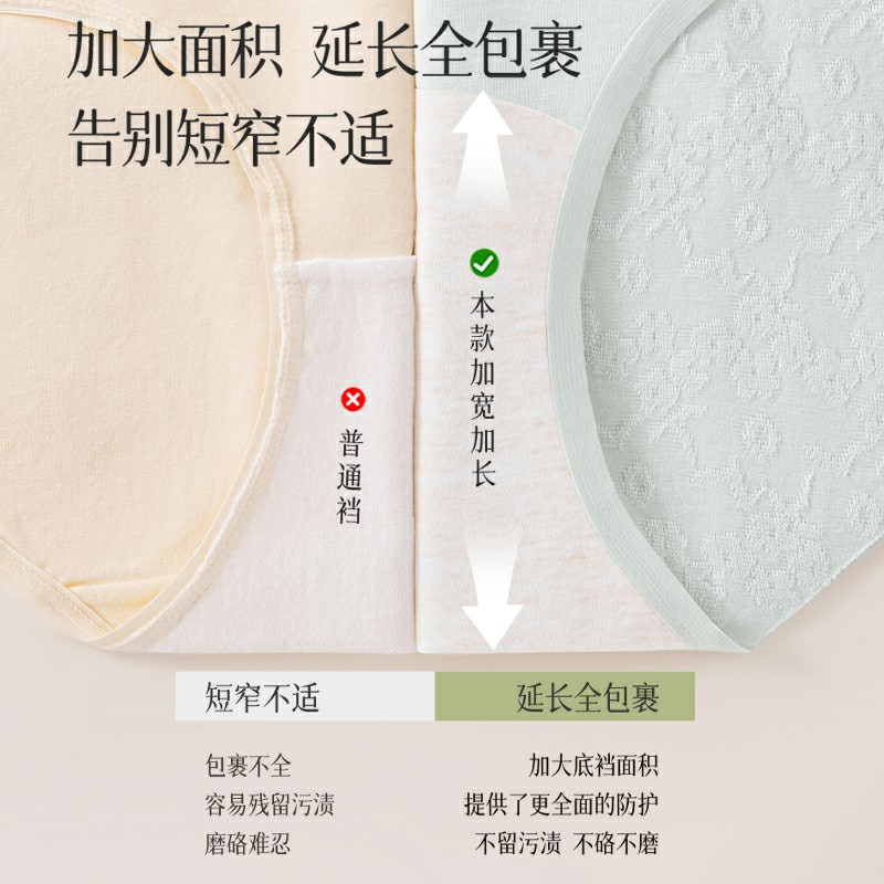 女士女生三角裤 大码 高腰无痕抗菌加长裆新款 菇娘家零染棉纯棉内裤