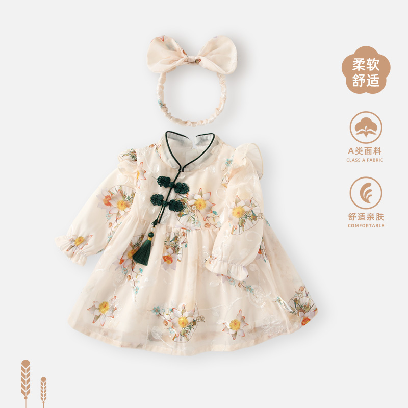 女宝宝连衣裙2025新款 国风汉服裙子女童婴儿周岁礼服公主裙夏 秋装