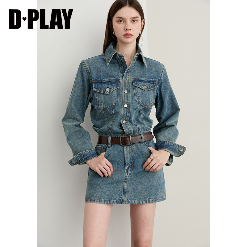 短裙 蓝色连衣裙女流行休闲通勤牛仔裙子长袖 DPLAY2025年秋季 新款