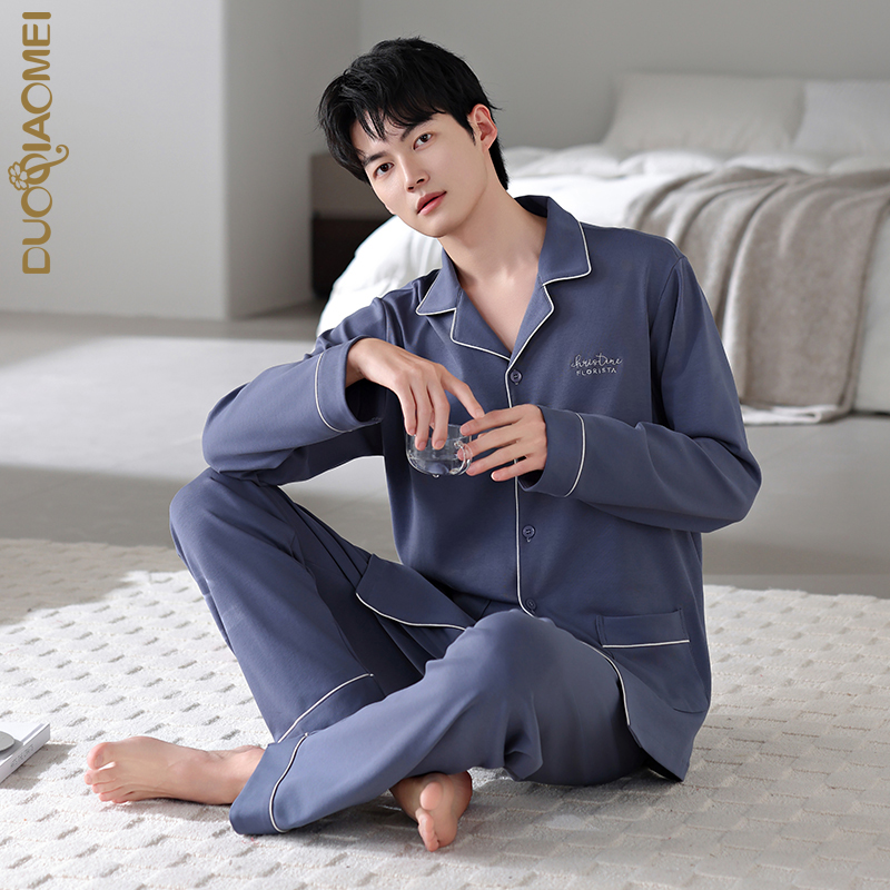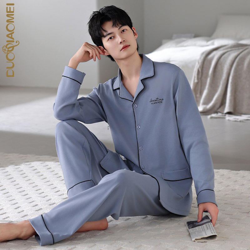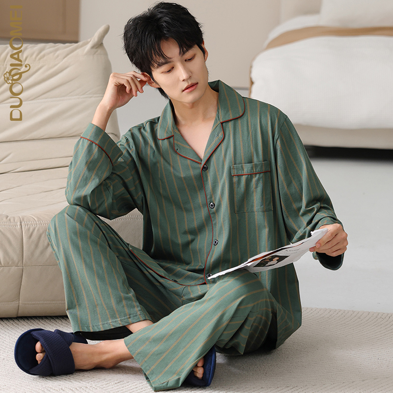 春秋季 条纹大码 2025年新款 长袖 可外穿家居服 开衫 纯棉睡衣男士