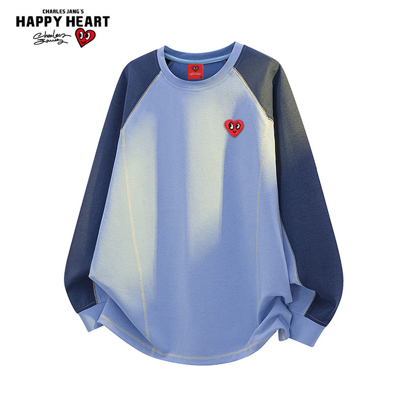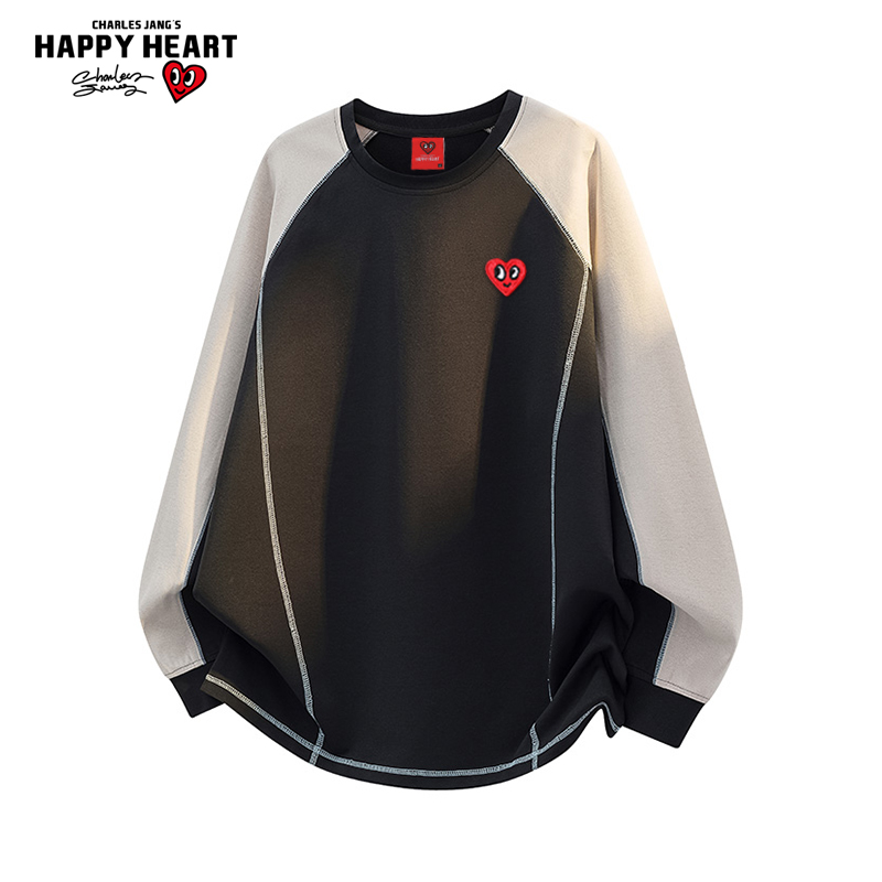 查尔斯桃心美式 宽松休闲百搭情侣运动上衣 拼接撞色圆领卫衣男秋季