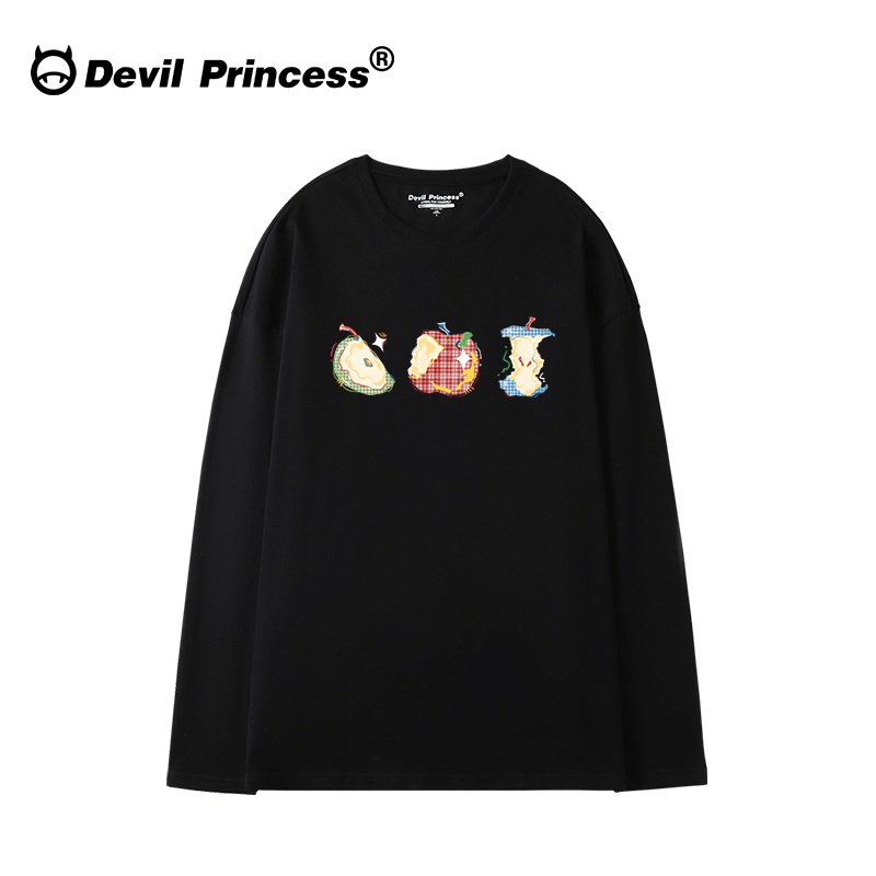 显瘦重磅上衣潮 t恤女大版 美式 学院风超火设计感卡通印花黑色长袖