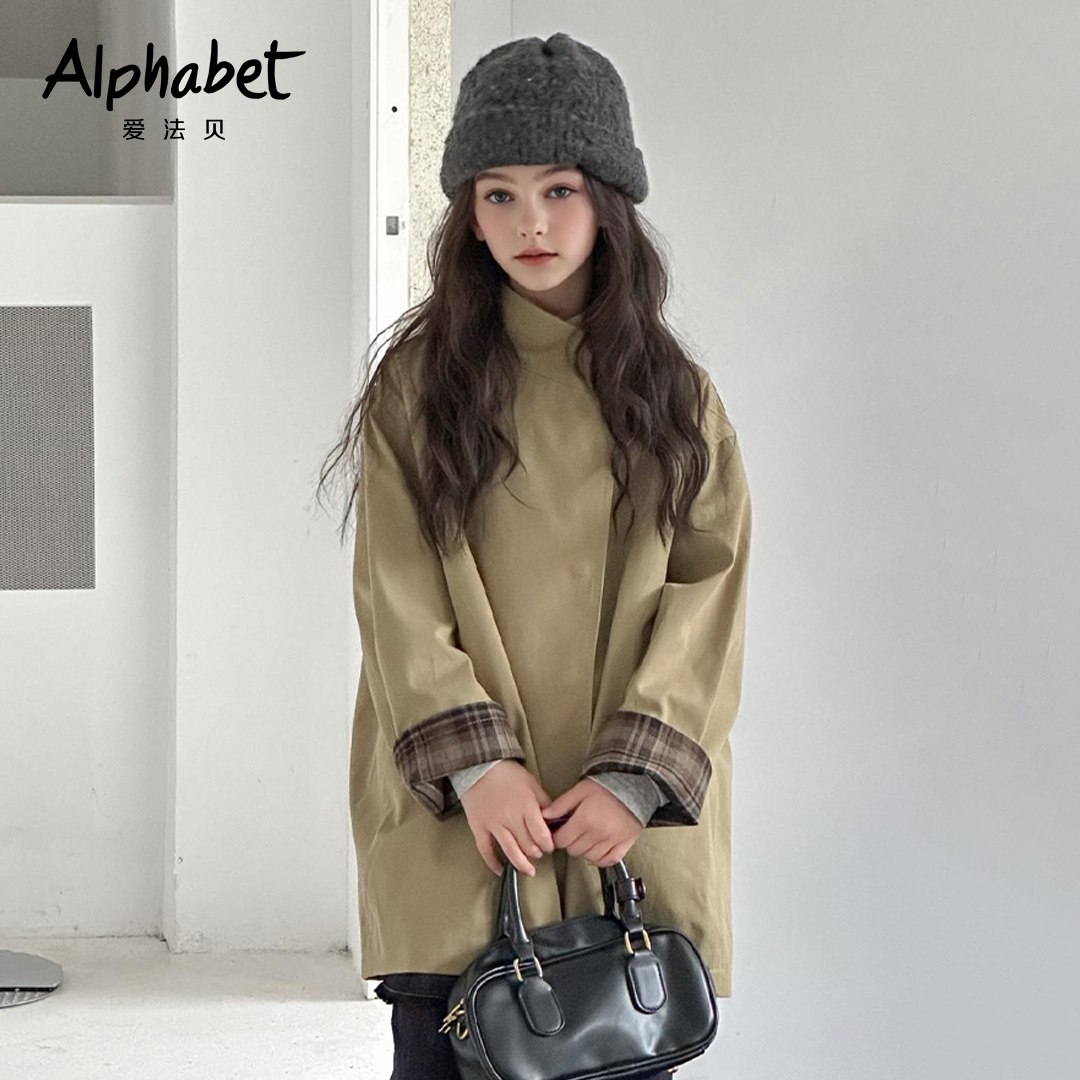 休闲上衣甜酷风潮 中长款 爱法贝25秋新款 女童风衣外套儿童简约时尚