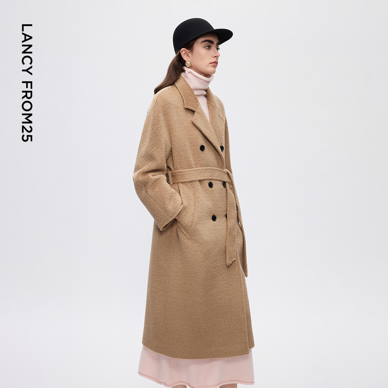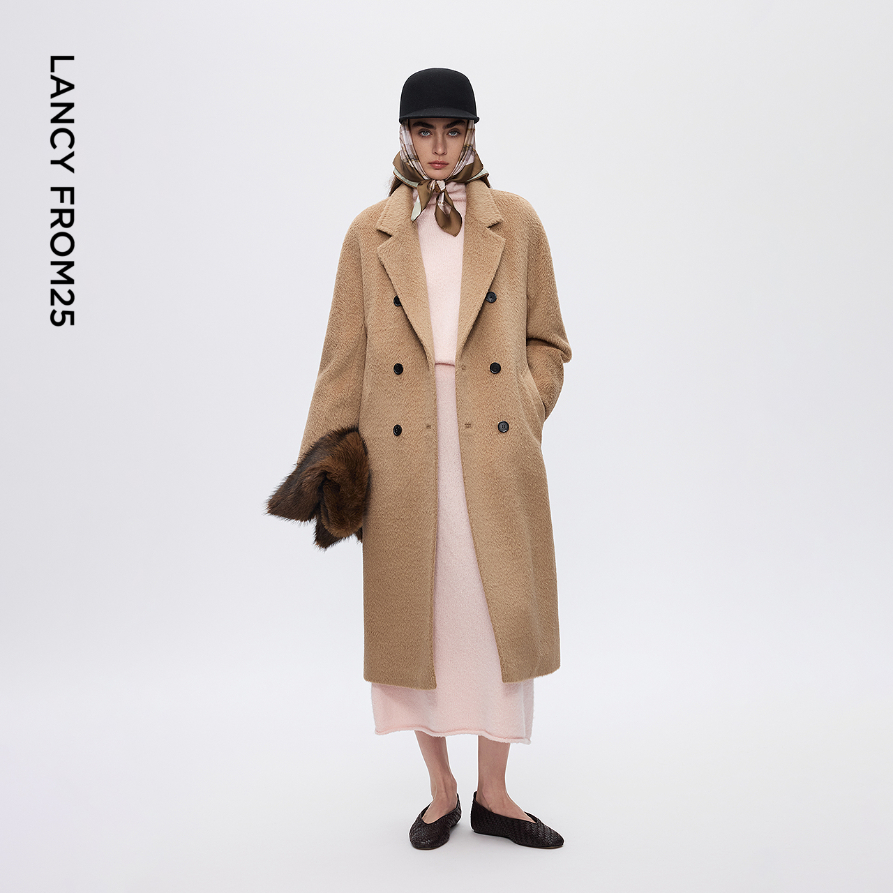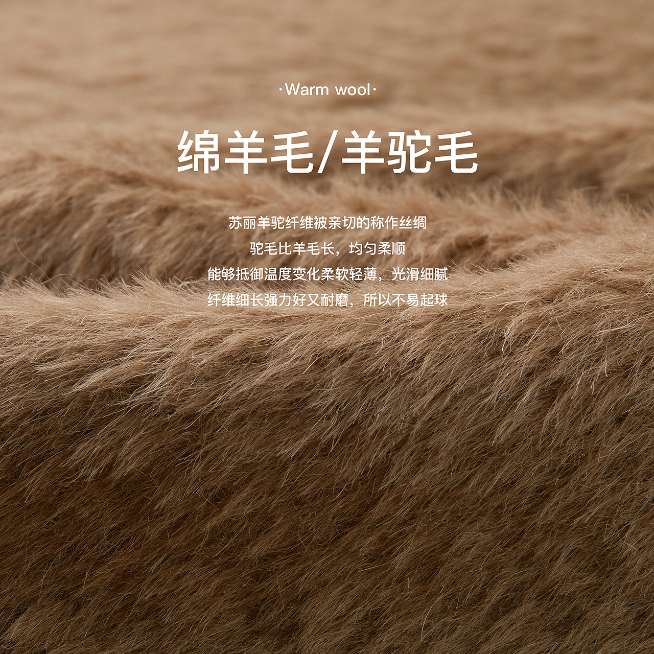 RUISHI芮时 重磅驼绒桑蚕丝羊毛慵懒两穿领毛呢大衣女秋冬外套女