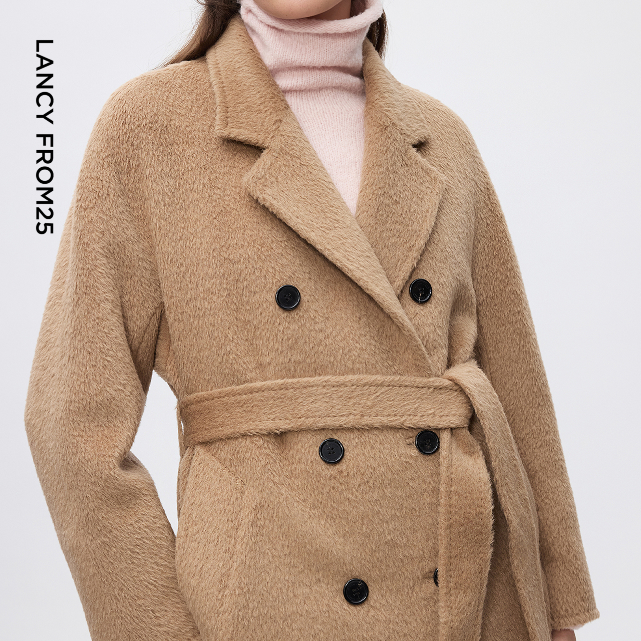 新款 2025冬季 秋水伊人优雅翻领毛呢外套 通勤大衣 100%绵羊毛