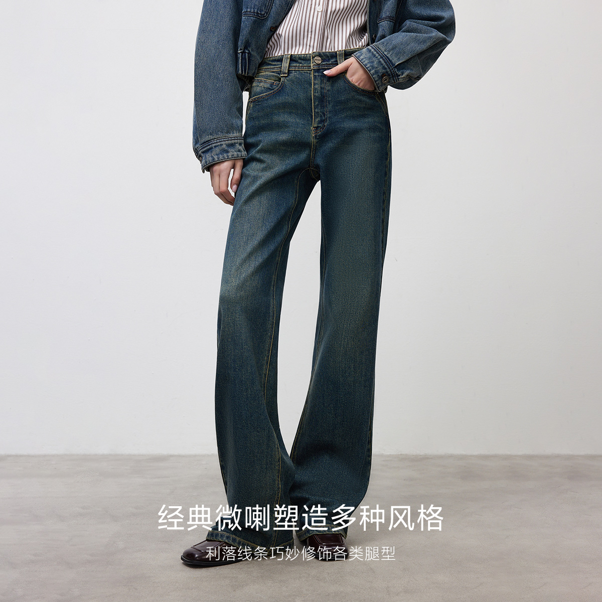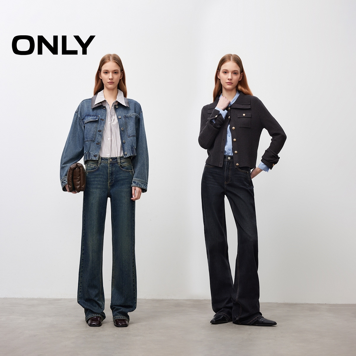 牛仔裤 舒适通勤复古水洗磨白做旧显瘦微喇裤 女 新款 ONLY2025冬季