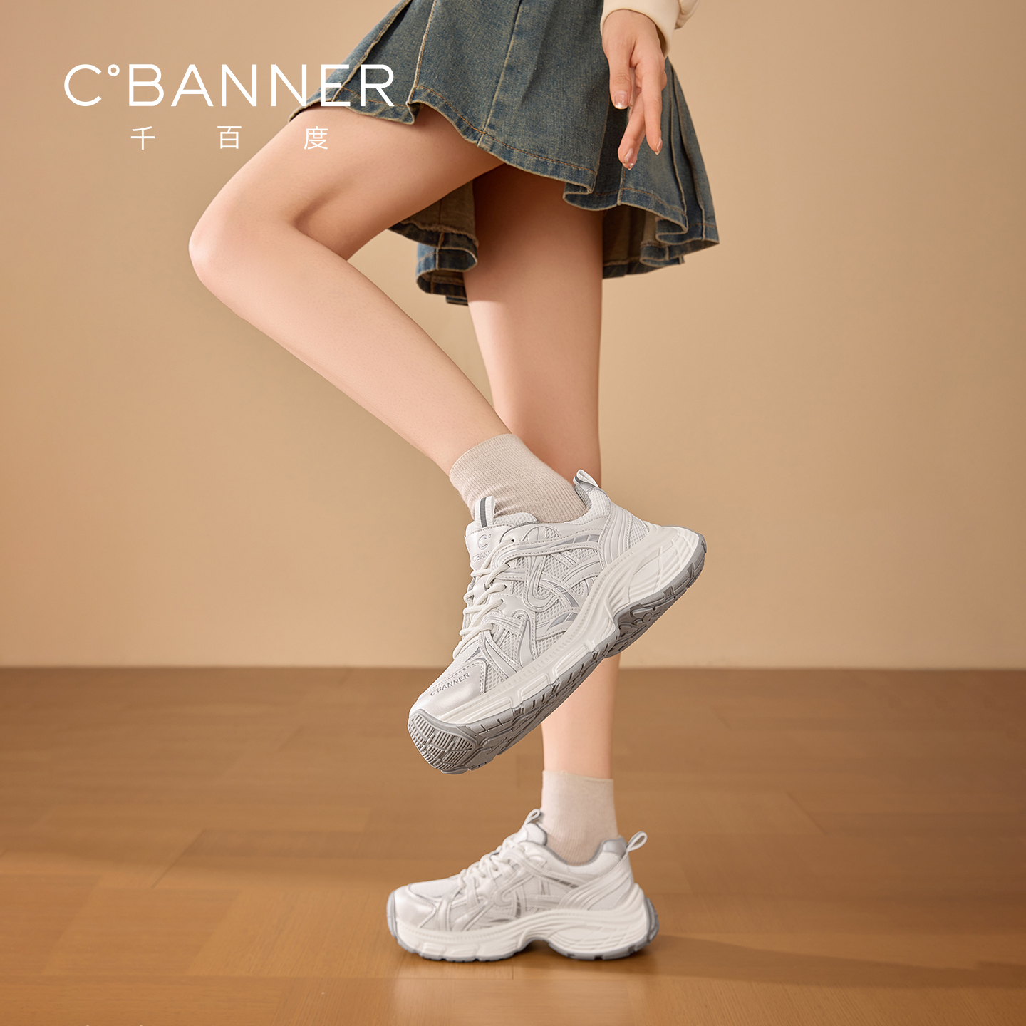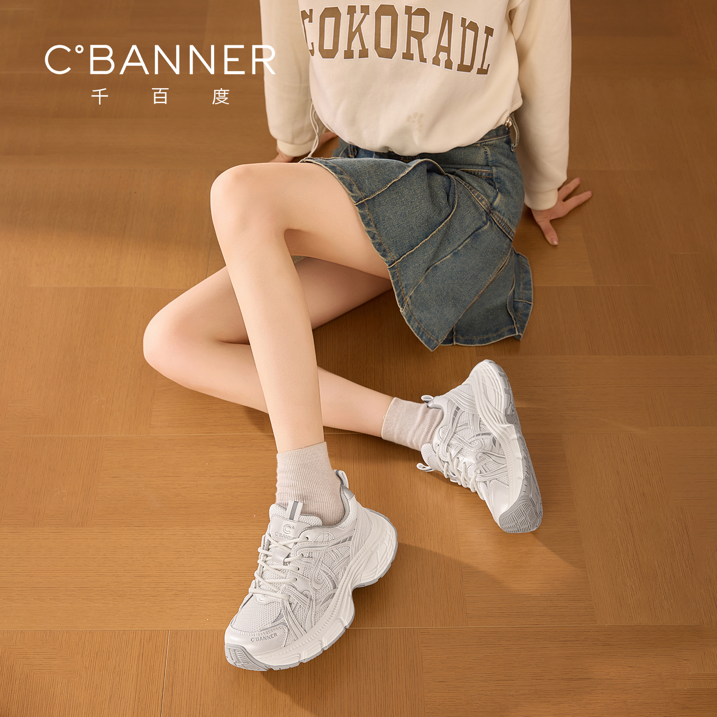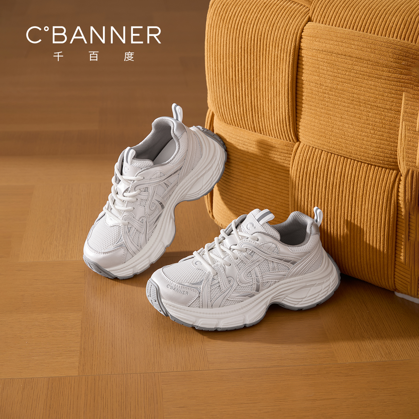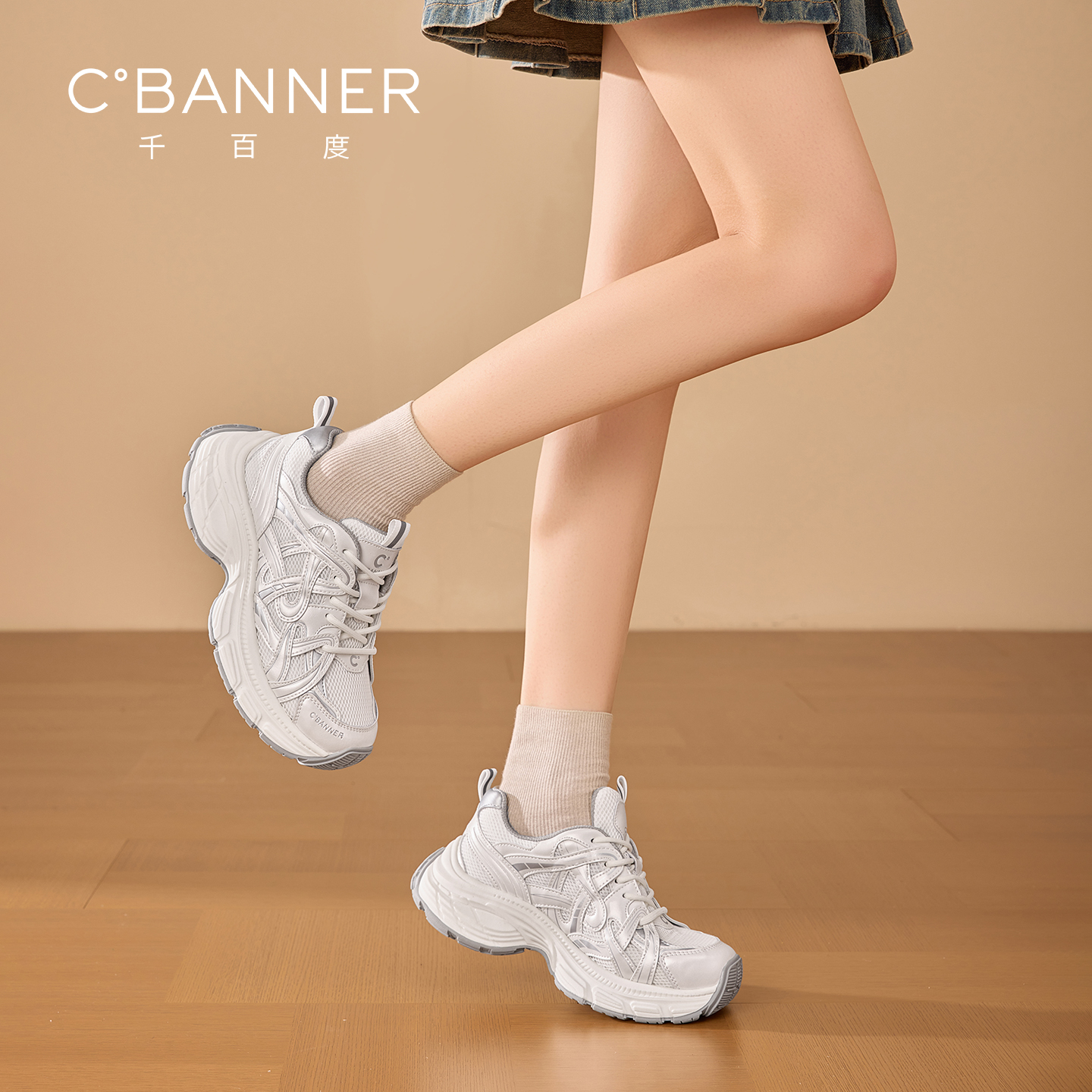 百搭网面透气休闲鞋 千百度厚底老爹鞋 小个子增高时尚 新款 2025秋季