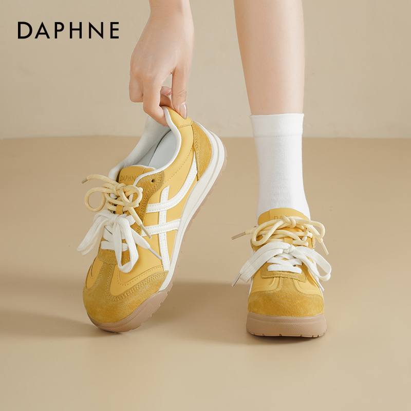 女2025新款 子运动休闲板鞋 秋季 百搭阿甘鞋 爆款 拉夏贝尔黄色德训鞋