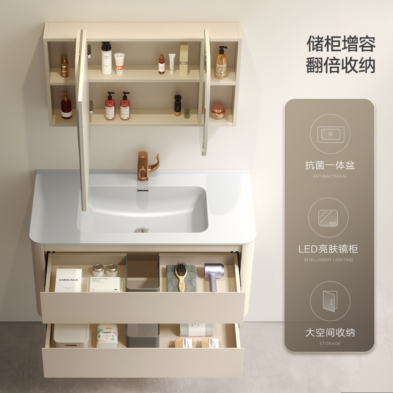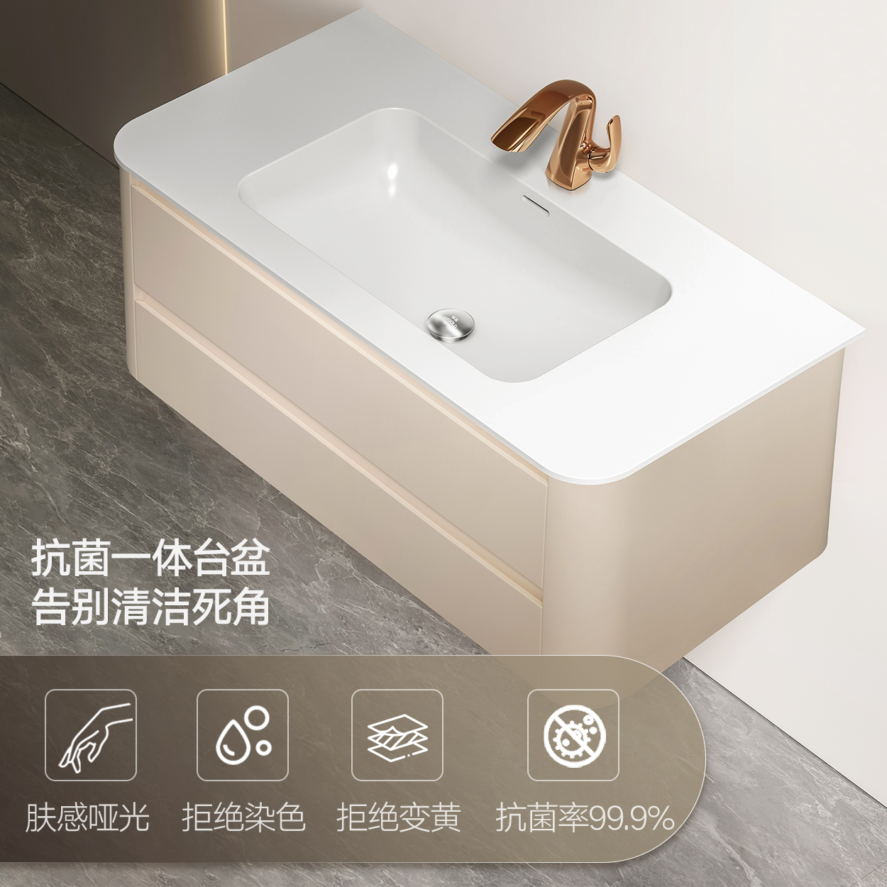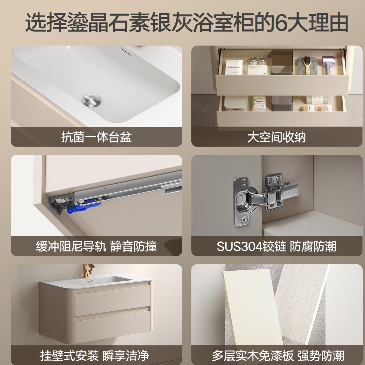 悍高浴室柜实木免漆板材素银灰颜色轻奢卫浴智能浴室柜套装