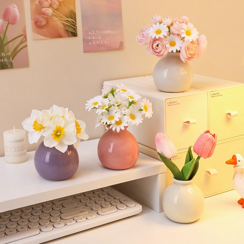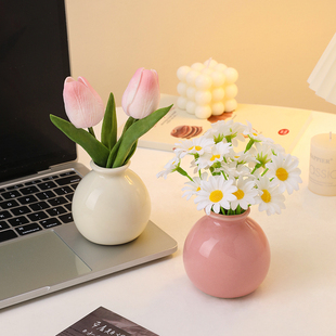欧式 饰摆件 玫瑰插花花瓶白色简约陶瓷花器客厅餐桌干花鲜花水培装