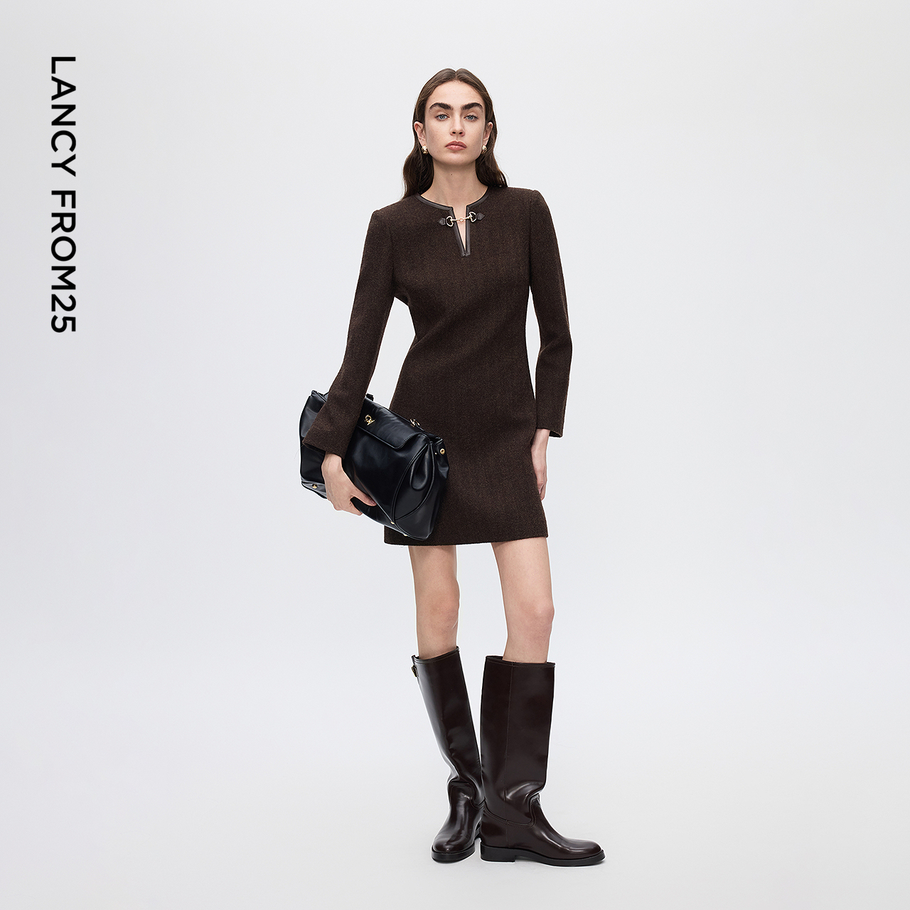 Vero A字流苏短裙淑女风 Moda连衣裙2025秋冬含绵羊毛小香风长袖