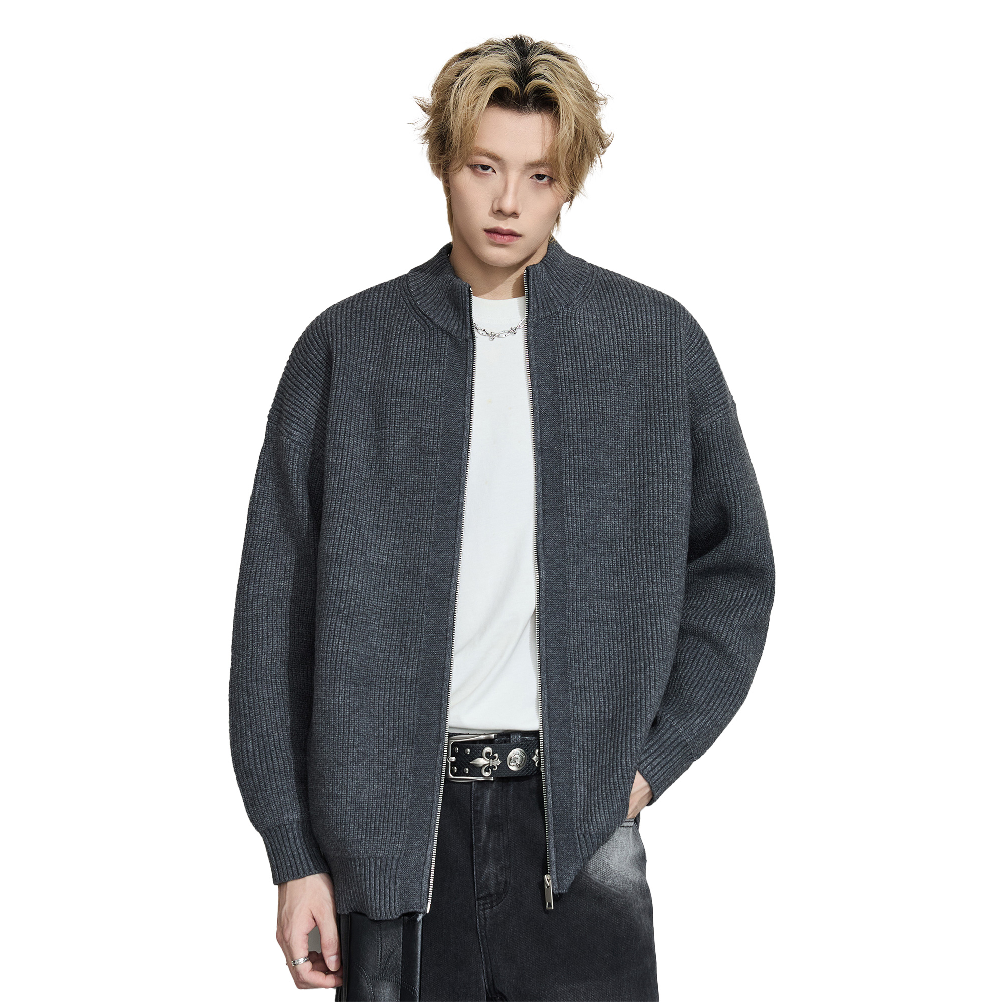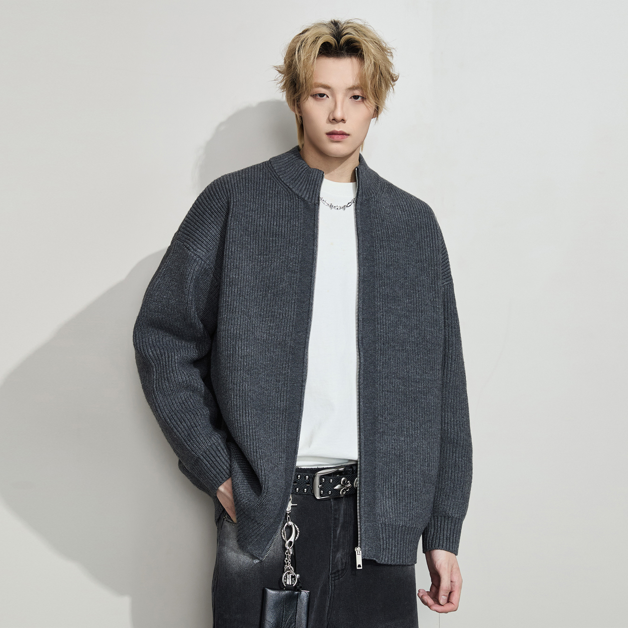 加厚情侣通勤慵懒针织开衫 ALLIN 灰色立领毛衣外套男秋冬2025新款