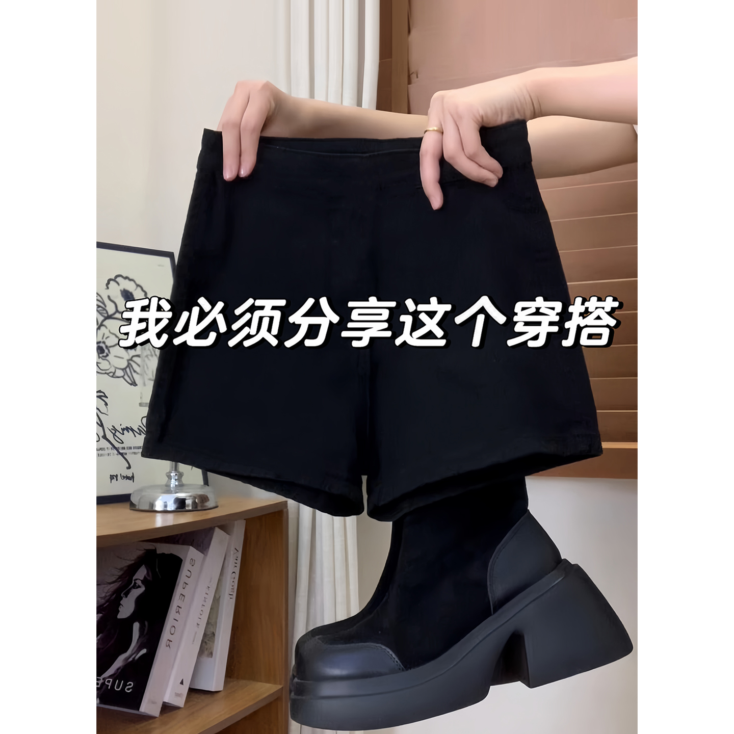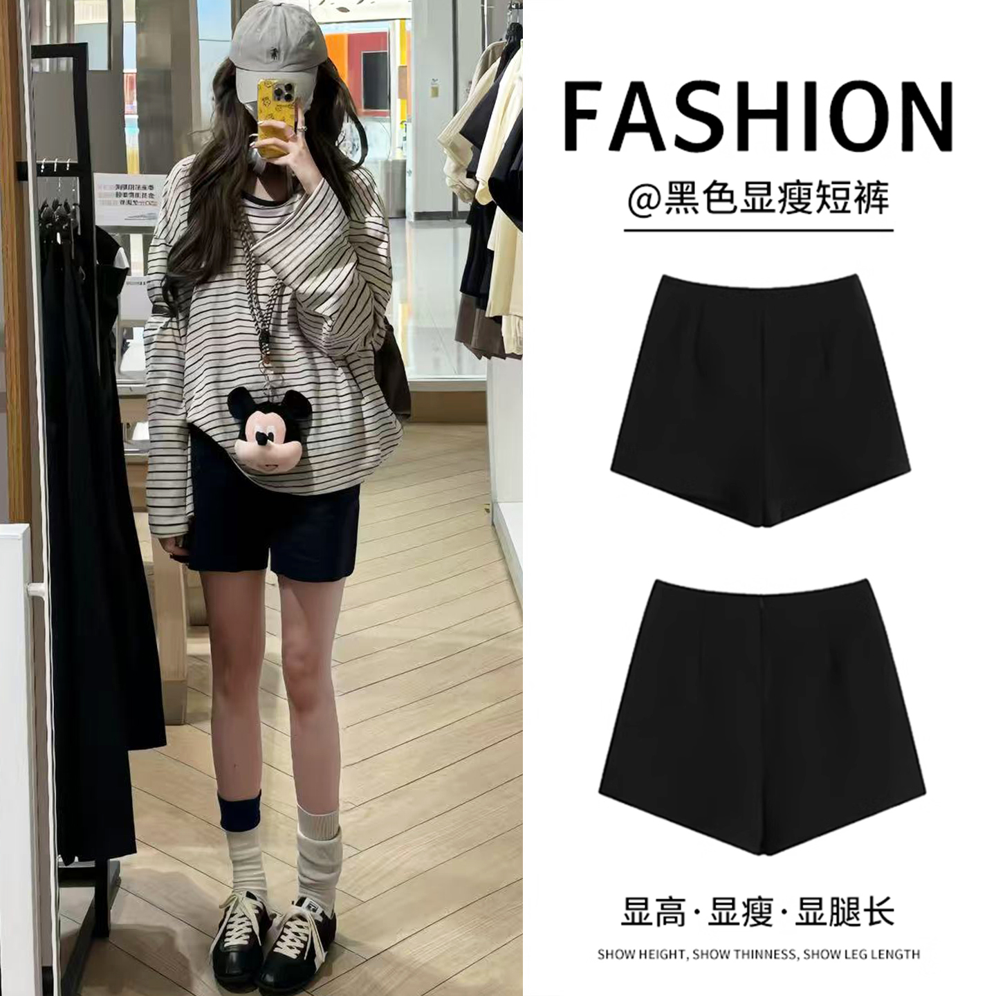 女春秋新款 休闲直筒慵懒松弛感裤 高腰垂感窄版 裤 子 西装 黑色阔腿裤