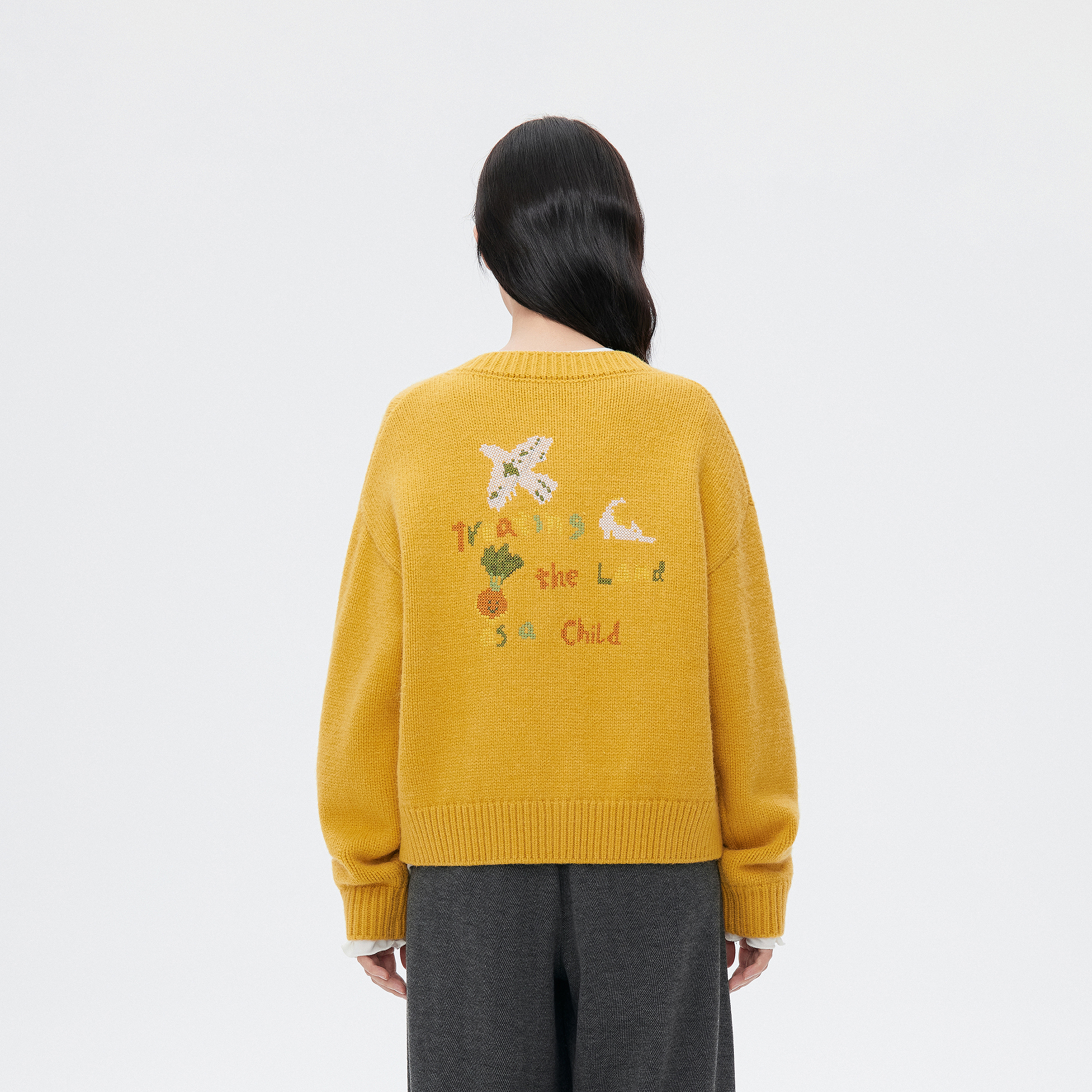 宽松休闲绣花毛衣开衫 飞鸟和新酒灰色长袖 新款 女2025秋季 针织衫