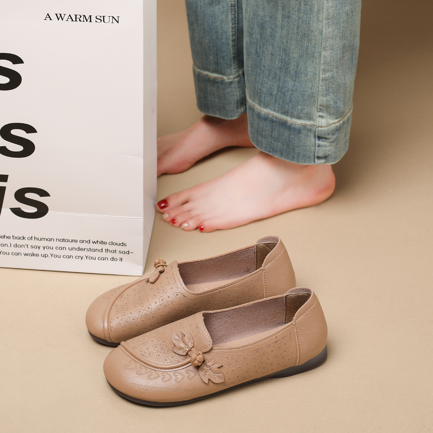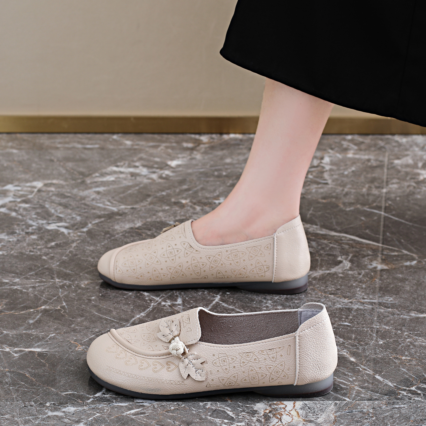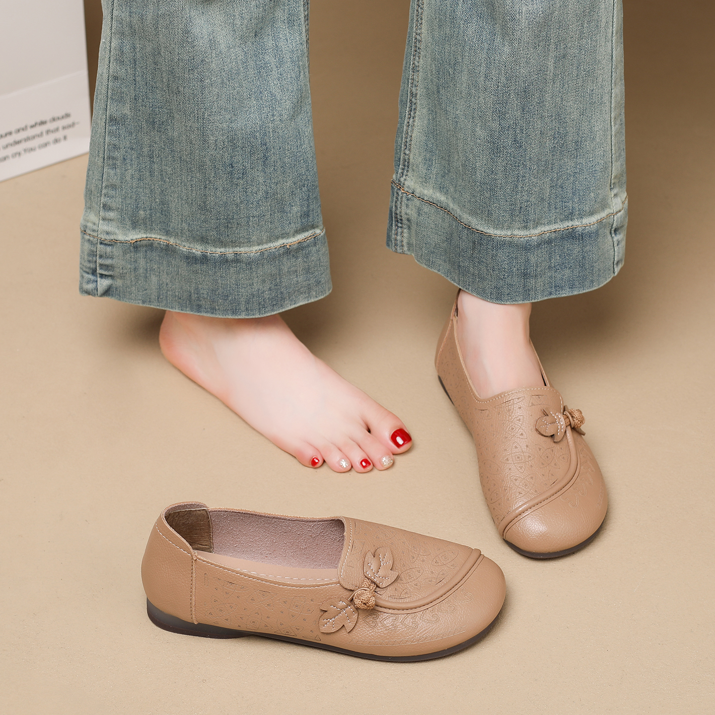 女2025新款 软底不累脚豆豆鞋 秋季 妈妈单鞋 一脚蹬乐福鞋 老北京布鞋