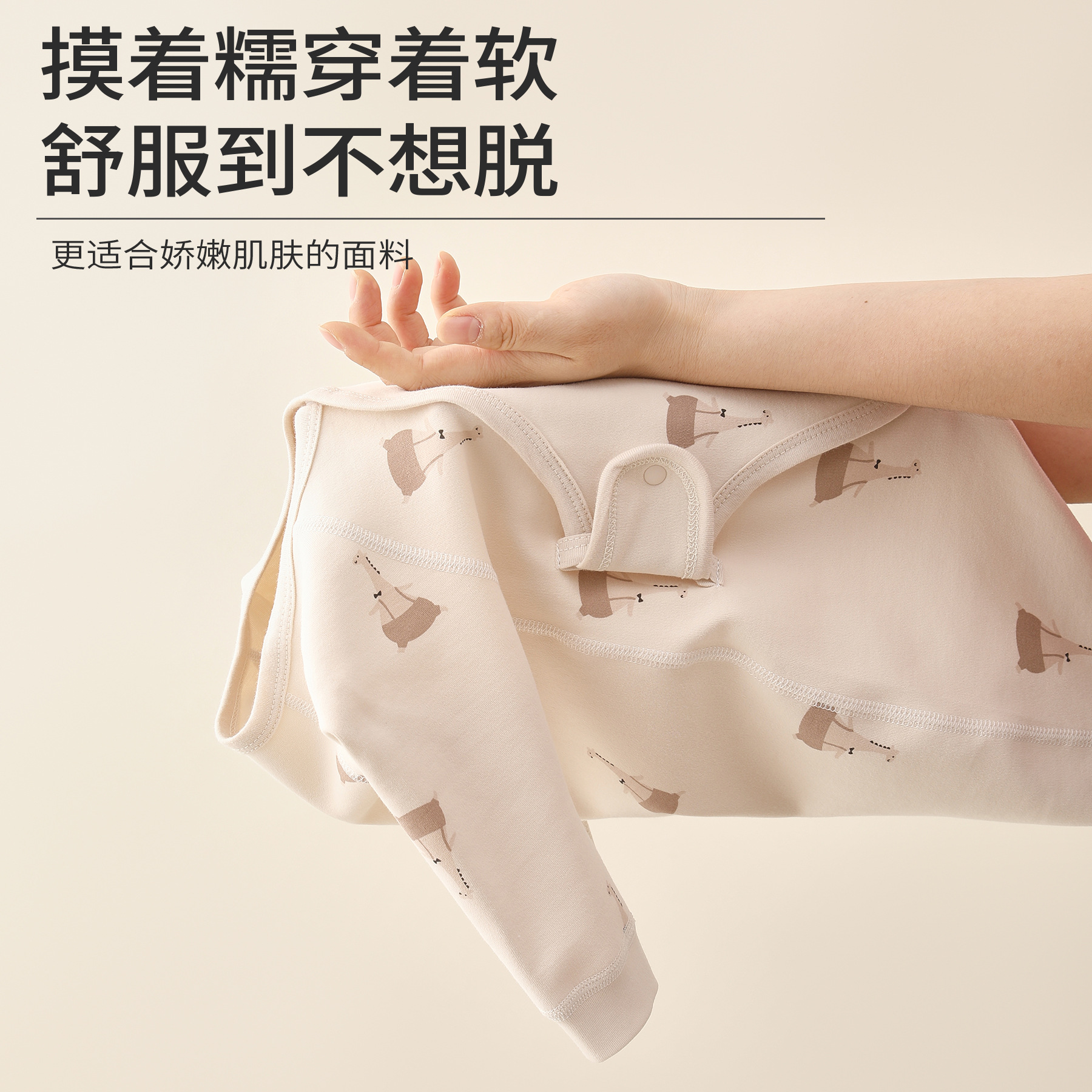 新生婴儿连体衣秋冬季 舒绒棉宝宝贴身护肚魔术贴哈衣 蝴蝶衣52码