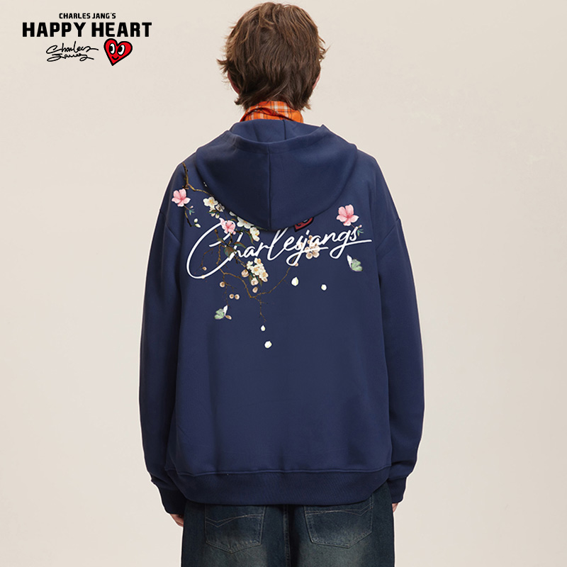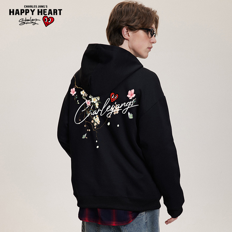 花卉印花连帽卫衣男休闲宽松长袖 新款 2025年春秋季 查尔斯桃心